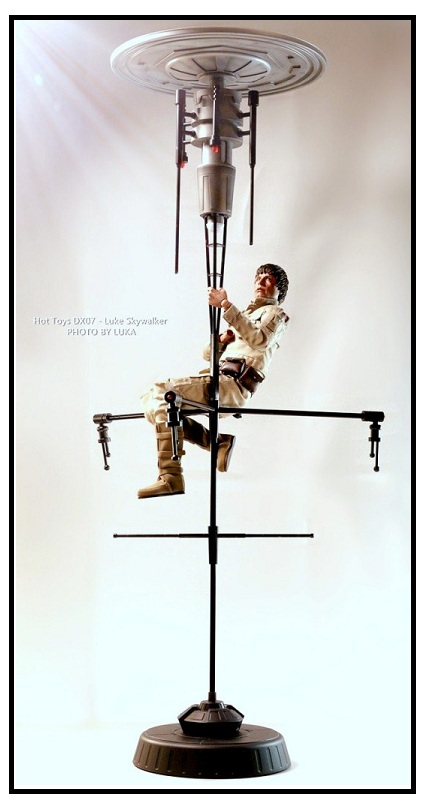 Likewise, no fan's display will be complete without Luke hanging on the gorgeously fabricated light-up Bespin weather vane diorama which can be mounted onto a wall or ceiling (above). Allowing 90 degree movement, this diorama compliments the battle-damaged figure perfectly. For the non-battle damaged Luke, a figure base from the interior of Bespin is also included and makes for an ideal way to display this particular figure (at top).