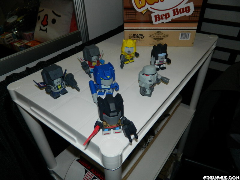The coolest thing that really caught our eye at The Loyal Subjects was their line of small vinyl figures. Both Transformers and GI Joe are coming to you in great 3 inch figures styled after the original cartoon characters (G1 for TF) with a neat chunky style designed by vinyl and Disney guru Les Schettkoe. The figures are highly articulated for small vinyl, come with accessories and weapons, and are packed in blind boxes. Sold to stores in 16 packs, both the Transformers and Joe series have 8 figures plus additional, rare chase figures. The Transformers set even has ultra rare “contest figures” in a special promotion with Hasbro! Look for the Joe set around March and Transformers closer to Comic-Con. Single blind boxes will retail for about $12.99, and Toy Tokyo will have exclusive 2-packs.