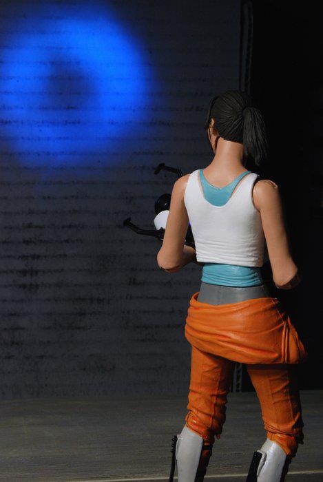 NECA provides new photography of CHELL, their latest Portal action figure. Hitting retail next week, the 7-inch Chell action figure Chell is fully poseable with over 20 points of articulation and a display base. Articulation includes ball jointed neck, shoulders, torso and wrists along with insert molded ball hinged elbows and knees and more. Even more impressive is her ASHPD accessory which actually lights up and glows blue just like in the game and as seen in NECA's full size ASHPD prop replicas.
