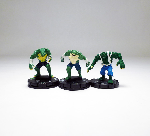 And that goes double for HeroClix players! The Gotham City Strategy Game debuts WizKids’ new “SwitchClix” mechanic that lets you use figures in different ways, often in completely different games! The four villains and Batman can thus transition from this board game into a regular HeroClix match; simply pop the figure off of its Strategy Game base and onto the included HeroClix dial and you’re ready to go. Each figure comes with both bases as well as a standard HeroClix card. Best of all, all five characters are extremely playable in HeroClix from the inexpensive 49 point Two-Face to the 115 point Batman. Each Villain has the Batman Enemy Team Ability, Arkham Asylum keyword and at least one other, and a power-cancelling Trait and Special Power (or two Traits in the case of Penguin) ranging from Croc’s Willpower denial and D&D-sounding “Claw, Claw, Bite” to Joker’s Perplex shut off and gas attack. Cobblepot can even spawn Penguin Automa-Bombs proving that while the birds may not be able to fly, they can go “BOOM!!!” Finally, this Batman shows up with a highly effective dial, Improved Movement ignoring hindering terrain, a great super Incapacitate Special Power, and one of the coolest Traits in the game; “Utility Belt” lets you give Batman permanent access to a standard attack or damage power that he didn’t already have at the beginning of the game, letting you tailor your abilities and strategy to whatever you’re facing across the field of battle!