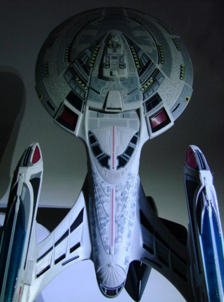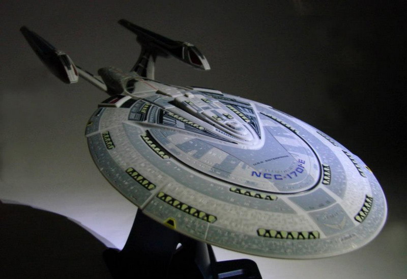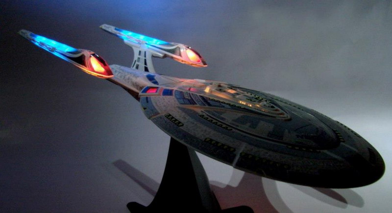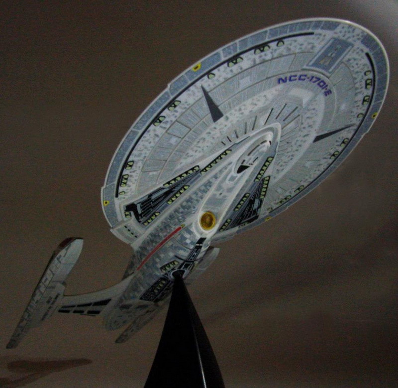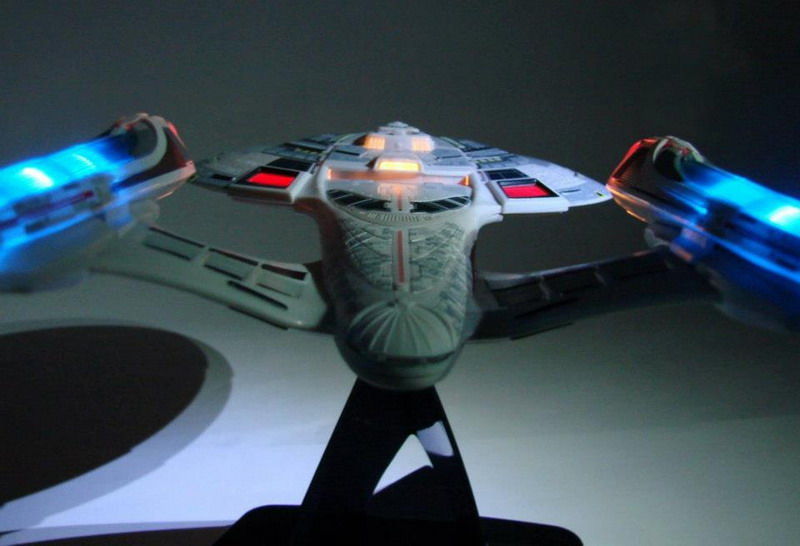 This new version of the E features a completely different paint scheme from DST’s original model of the E, one that accurately reflects the ship’s appearance in Nemesis. This edition also includes additional lighting effects, specifically on the ship’s nacelles, which now light up for the first time. And of course, the ship features the same authentic sound effects as well as dialogue from Captain Jean-Luc Picard. This starship replica is in stores now.