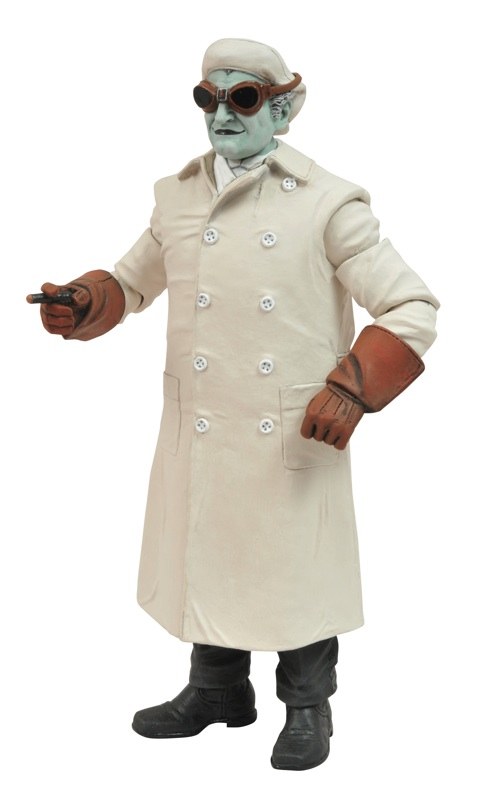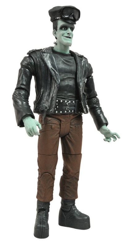 Clocking in at 350 pounds and 7 feet 3 inches tall, Herman Munster was built in 1850 by Dr. Victor Frankenstein, but is nothing like Frankenstein’s monster of legend. A good-natured, soft-spoken funeral home employee, Herman is a World War II veteran, a good husband to his vampire wife Lily and a loving father to his werewolf son Eddie. This 7-inch scale figure depicts actor Fred Gwynne as he appeared in the 1965 TV episode “Hot Rod Herman,” when he got mixed up in drag racing and lost the family Koach. The Select version of Herman includes parts to build the family staircase diorama; the basic figure will also be available at Toys “R” Us.