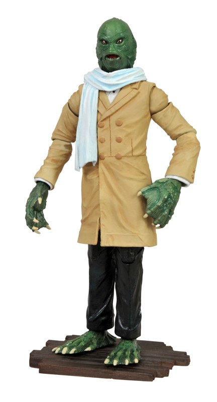The Munster family has many branches, and one branch is inhabited by Uncle Gilbert, a strange, dapperly dressed undersea creature. A resident of the Black Lagoon, he once asked the family to hold onto 180,000 in Spanish doubloons he had salvaged from various shipwrecks. This 7-inch scale figure depicts Gilbert (played by Richard Hale) as he appeared in the 1965 TV episode “Love Comes to Mockingbird Heights.” Uncle Gilbert will only be available as a Previews-exclusive Select figure, and includes parts to build the family staircase diorama.
