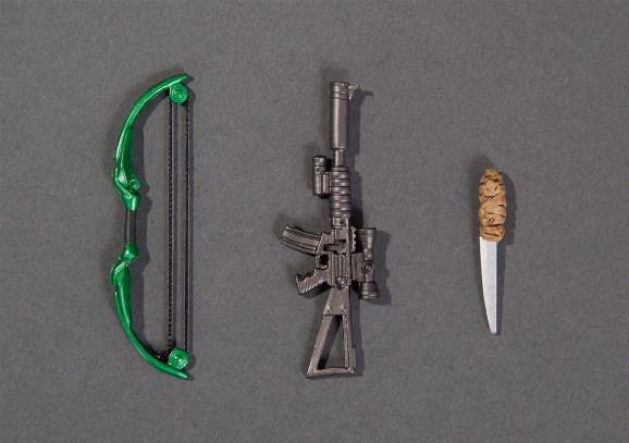 Sometimes even the greatest of heroes and evilest of villains need a helping hand. Some of the accessories you can expect to see will be knives for Solomon Grundy, a trident for Aquaman, Deathstroke will have a sniper rifle and Green Arrow will have his trusty bow.