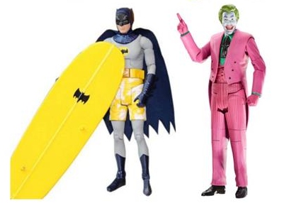 Following this summer's release of Mattel's 1966 Batman Action Figure Series 1 (Batman, Riddler, Penguin - see HERE) comes more vintage Batman fun. Series 2, scheduled for release fourth quarter 2013, is slated to contain: The Joker (as played by Cesar Romero), Catwoman (not pictured), and... Surf's Up Batman! These are all available for pre-order now at BigBadToyStore.com.