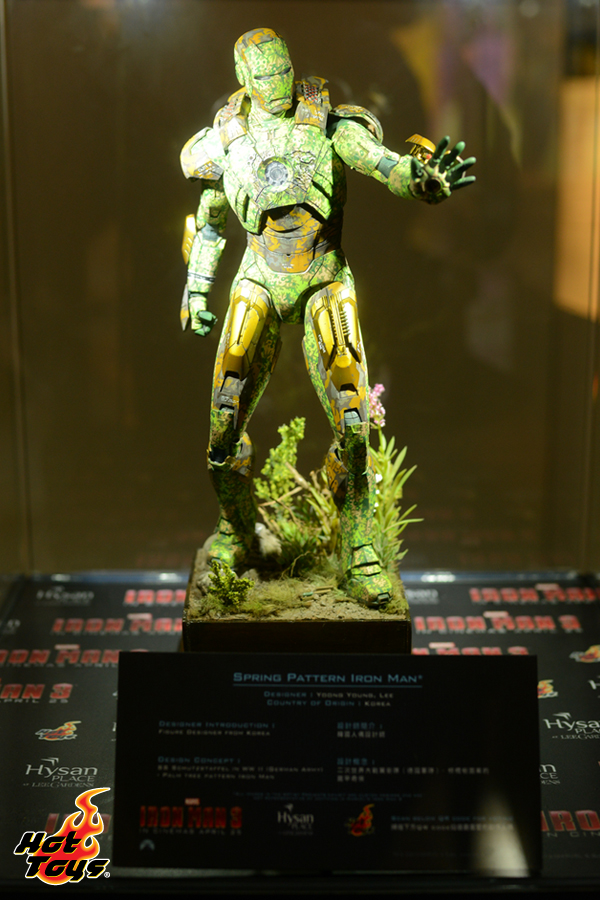 Hot Toys' Iron Man 3 event – SUIT UP AT HYSAN PLACE POWERED BY HOT TOYS - is now in full swing. The event is being held in Causeway Bay, Hong Kong and runs from April 5 - May 12. One of the main attractions is a custom Hot Toys Iron Man figure exhibit featuring the work from artists around the world. Pictured below are photos, courtesy of Hot Toys, showing off these amazing customs.