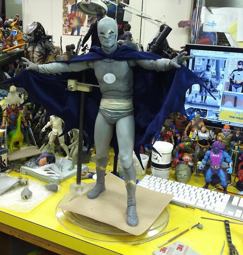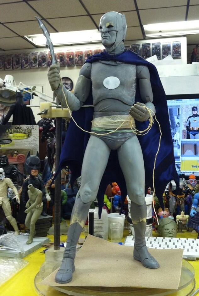 NECA has tweeted an update on their Batman Classic TV Series Quarter Scale Adam West Batman. Since Toy Fair (see the prototype on display HERE), NECA has gone in and refined the head and has added multiple pairs of hands. Also shown is an accessory: The Batarang grappling hook. Check out the new teaser images.