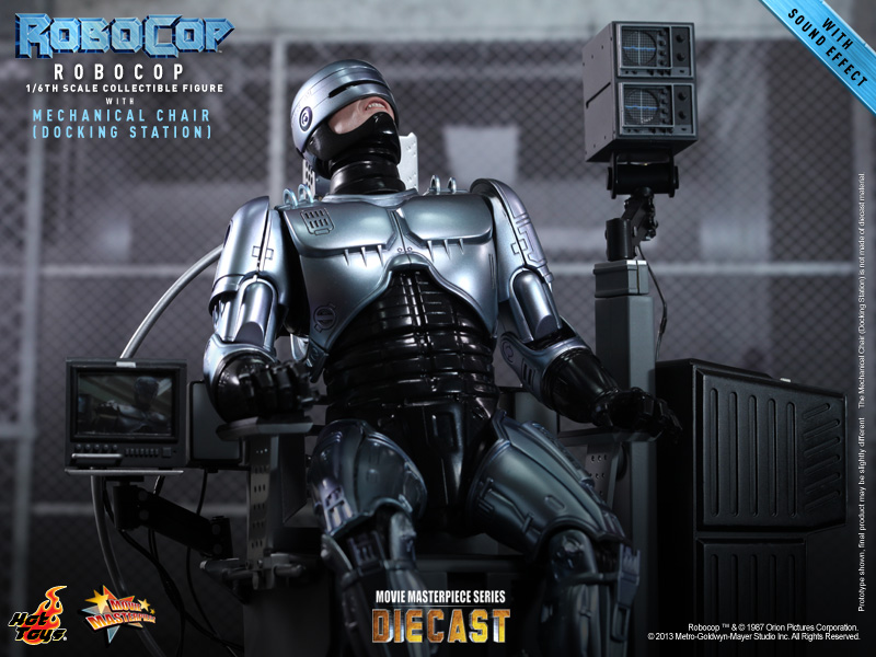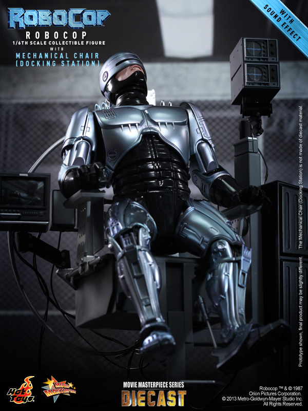 In addition to a new and improved 1:6th scale RoboCop action figure (see HERE), Hot Toys will be releasing a deluxe package that includes a mechanical chair, aka the Docking Station seen in the classic 1987 sci-fi film.