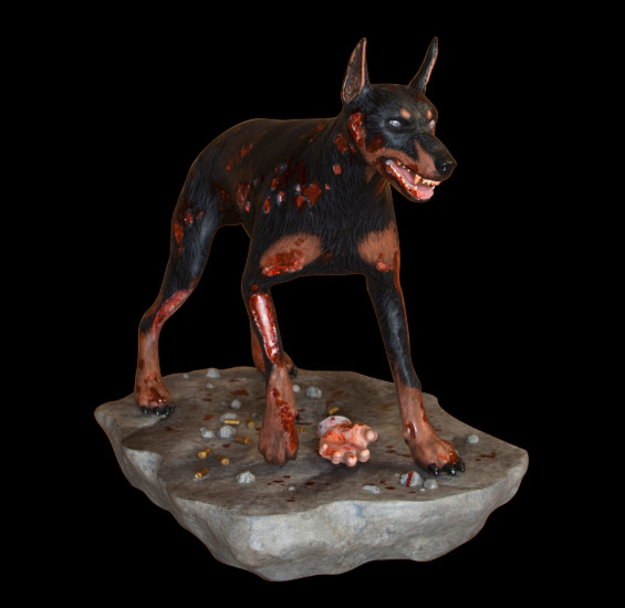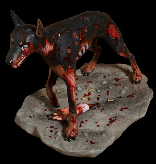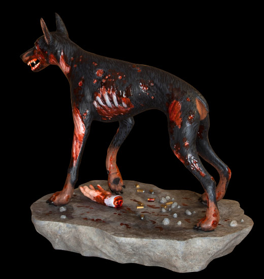 The second piece is a Zombie Dog from the hit game and movie series Resident Evil. Presented in 1:6 scale, the Doberman guard dog in an advanced state of infection stands 8" tall on a detailed, Raccoon City themed base. This statue is priced at $59.95 and limited to only 750 pieces.