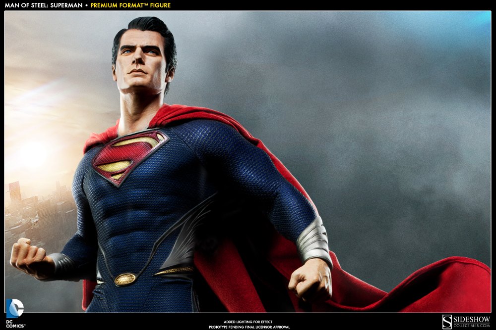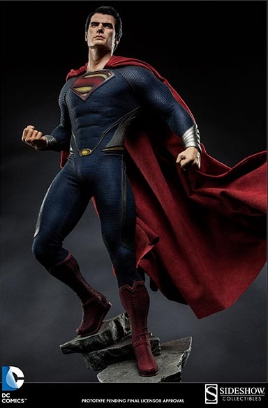 Sideshow is now accepting pre-orders on a new collectible from The Man of Steel: a Superman Premium Format Figure. Priced at $379.99 and arriving in March 2014, this 21.5 inch tall sculpture depicts a stunning likeness of Henry Cavill as Superman in this summer's major motion picture. Superman is fitted with a hand tailored replica of his distinctive new suit, with the Kryptonian symbol for hope emblazoned on his chest, and a fully poseable fabric cape.