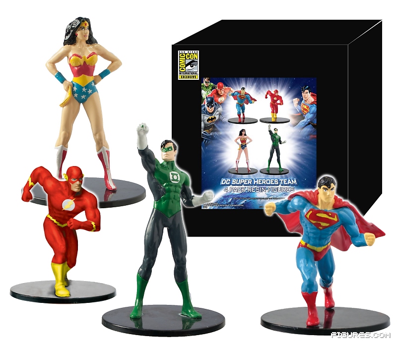 Monogram shares with collectors their sixth San Diego Comic-Con 2013 exclusive: DC Comics 4" Resin Figure Set #2. This four figure set includes the Man of Steel, Superman, The Flash, Wonder Woman and the Green Lantern. Each approximately 4-inch tall figure is cast in resin and comes mounted on a stand so they won't topple over.