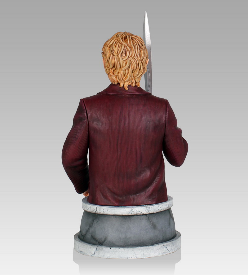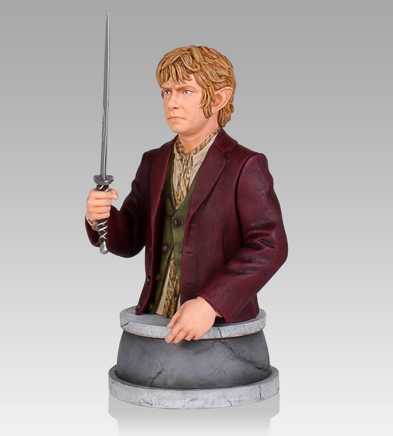 Digitally sculpted using photo reference directly from the set of The Hobbit: An Unexpected Journey and cold cast in the highest quality polystone comes the 5.5 inch tall Bilbo Baggins Mini Bust from Gentle Giant. Every detail – from Martin Freeman’s likeness as this incarnation of the titular hobbit to the runes engraved on Sting, his magical Elven blade – has been captured and recreated here. Each hand-painted bust is individually numbered and comes with a matching certificate of authenticity. $70 and scheduled to arrive in the second quarter of 2014.