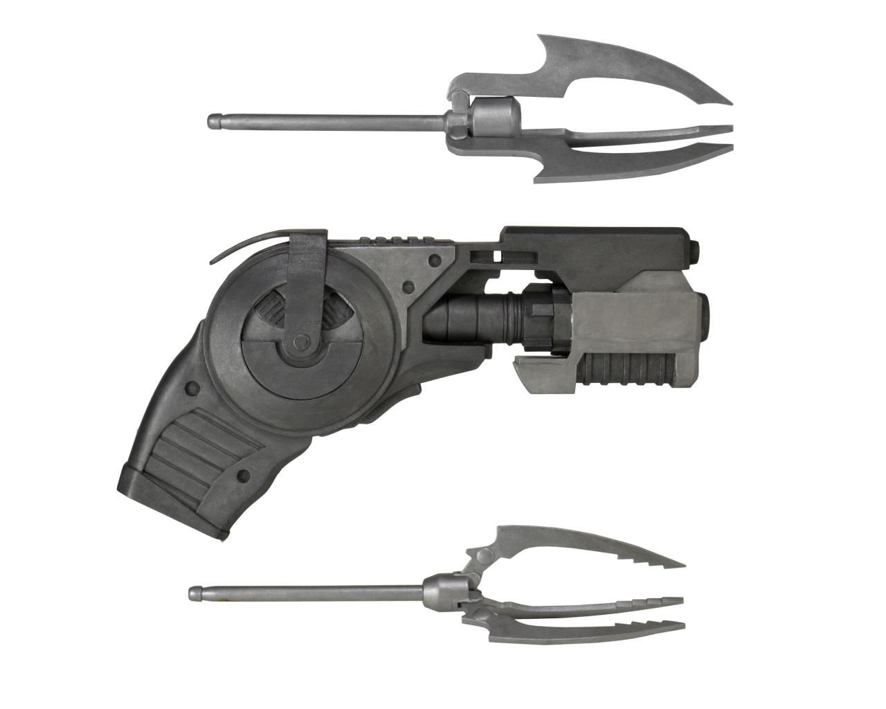 Modeled directly from the upcoming Warner Bros Games prequel of the Arkham Asylum franchise, the grapnel gun is mechanized and includes a spring-loaded feature. and includes two different hook attachments for customization. The exclusive is available now for pre-order for $34.99USD online and at select retail stores and will launch this October, coinciding with the release of the latest installment in the Batman: Arkham series, Batman: Arkham Origins.