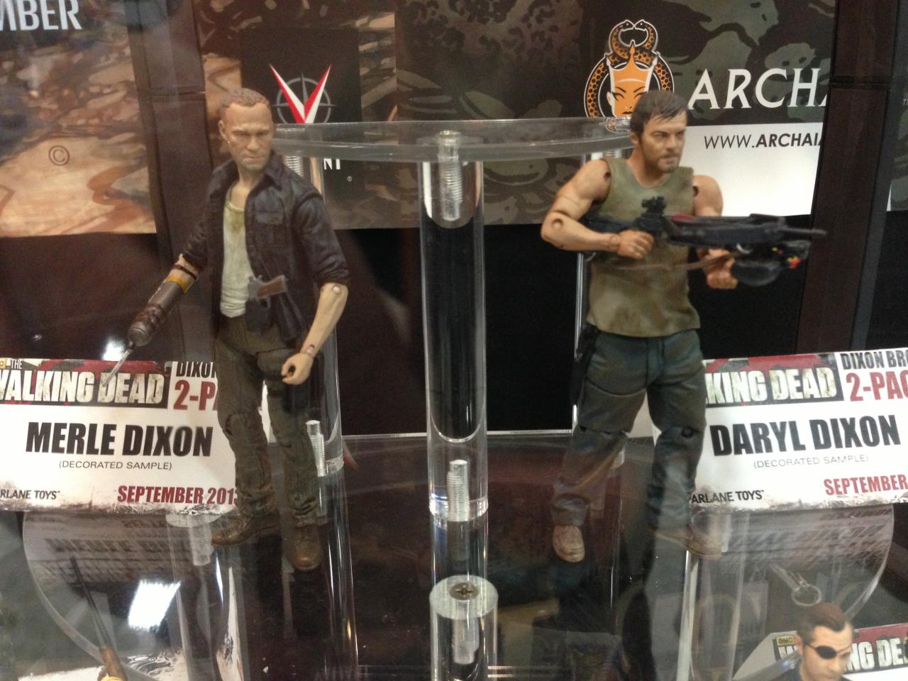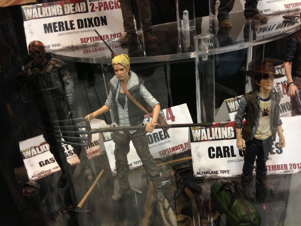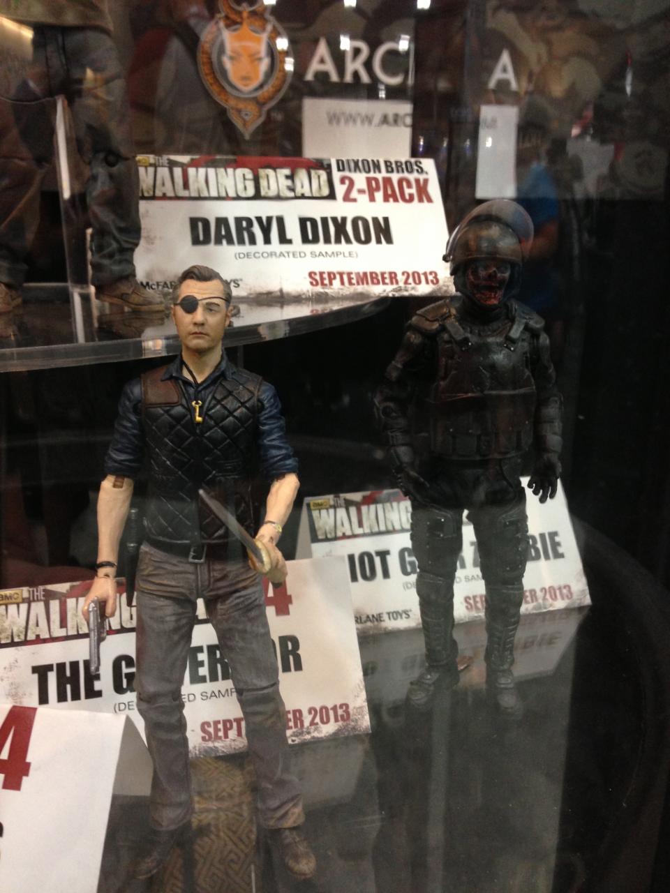 The latest assortment of McFarlane's Walking Dead TV series was on display at the Diamond booth along with the upcoming Dixon brothers 2-pack. On display to the public for the first time where final production samples of The Governor, Andrea, Carl and two totally awesome riot gear zombies. Series 4 of the Walking Dead TV figures are scheduled to release some time in September along with the Dixon Brother's 2-pack.
