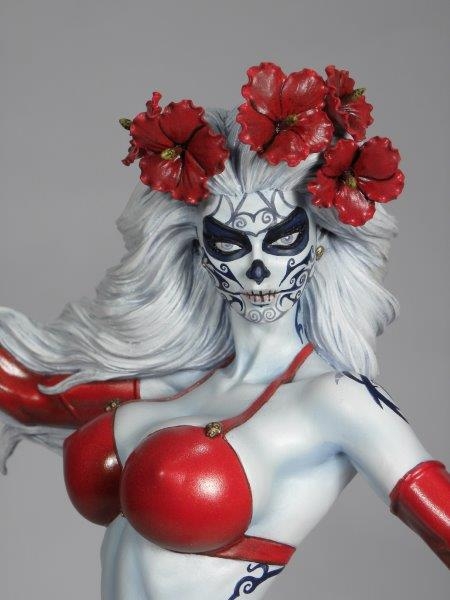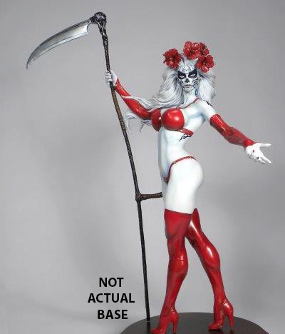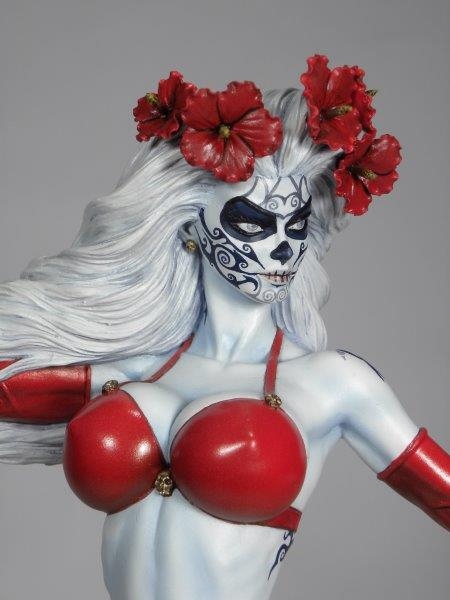 The CS Moore Studio reveals that their next project is a Lady Death La Muerta Statue. Based on the Lady Death cover artwork by Richard Ortiz, this take on Brian Pulido's sexy comic book character features a unique Mexican "Day of the Dead" face portrait - "La Muerta" translating to The Dead.