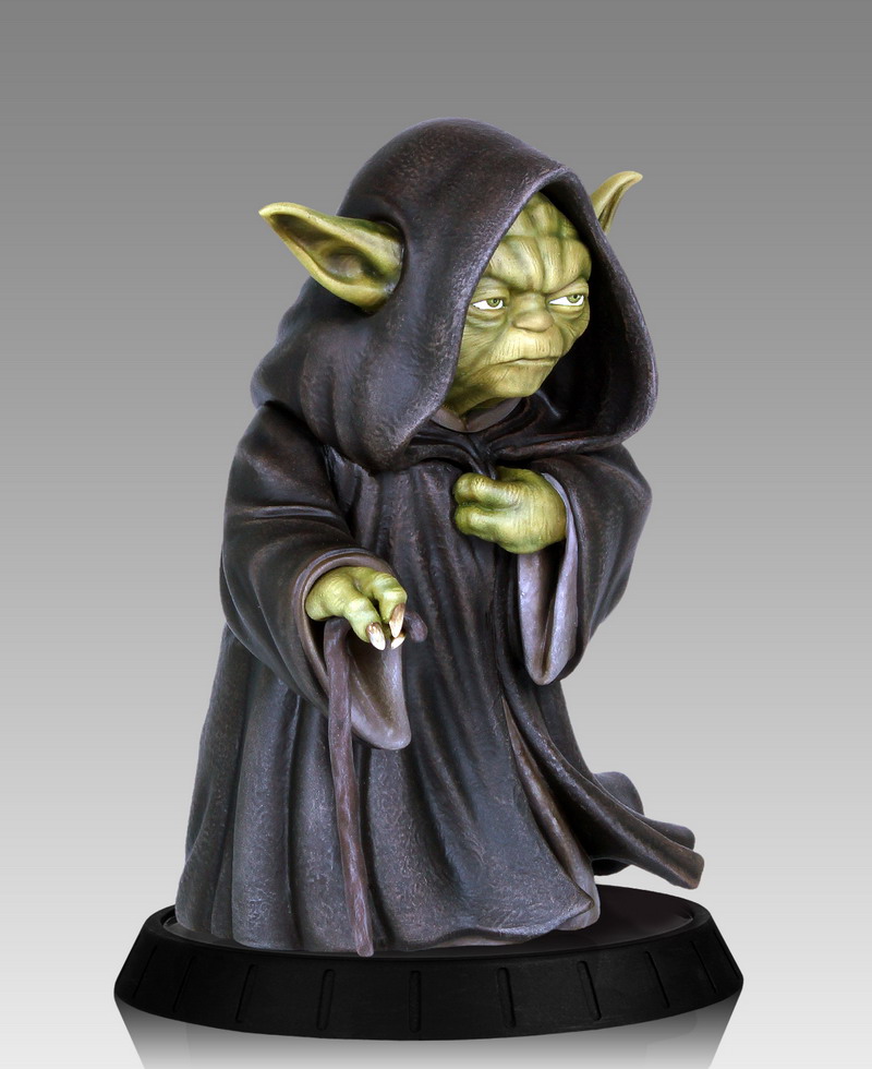 Inspired by the Adam Hughes’ artwork (which, in turn, was inspired by Gennedy Tartakovsky’s Star Wars: Clone Wars Animated Series), Gentle Giant Ltd. presents a new Yoda statue. Intended to be a companion piece to their upcoming Padme Amidala Statue, this fresh interpretation of the character - a realistic rendering inspired by animation - is dark, dramatic and unique. Digitally sculpted by the master artisans at Gentle Giant and individually hand-painted, each statue comes individually numbered and includes a matching certificate of authenticity. H 5.70” W 4.30” D 4.45”