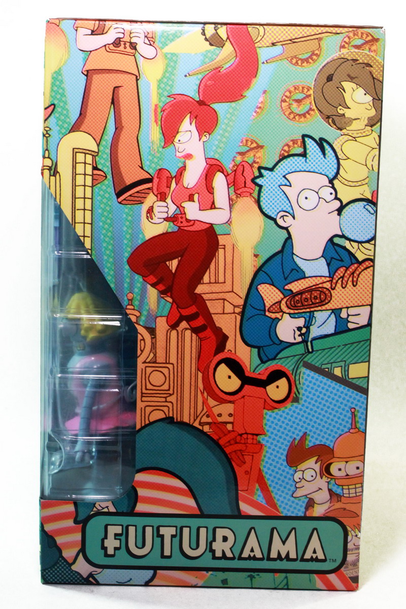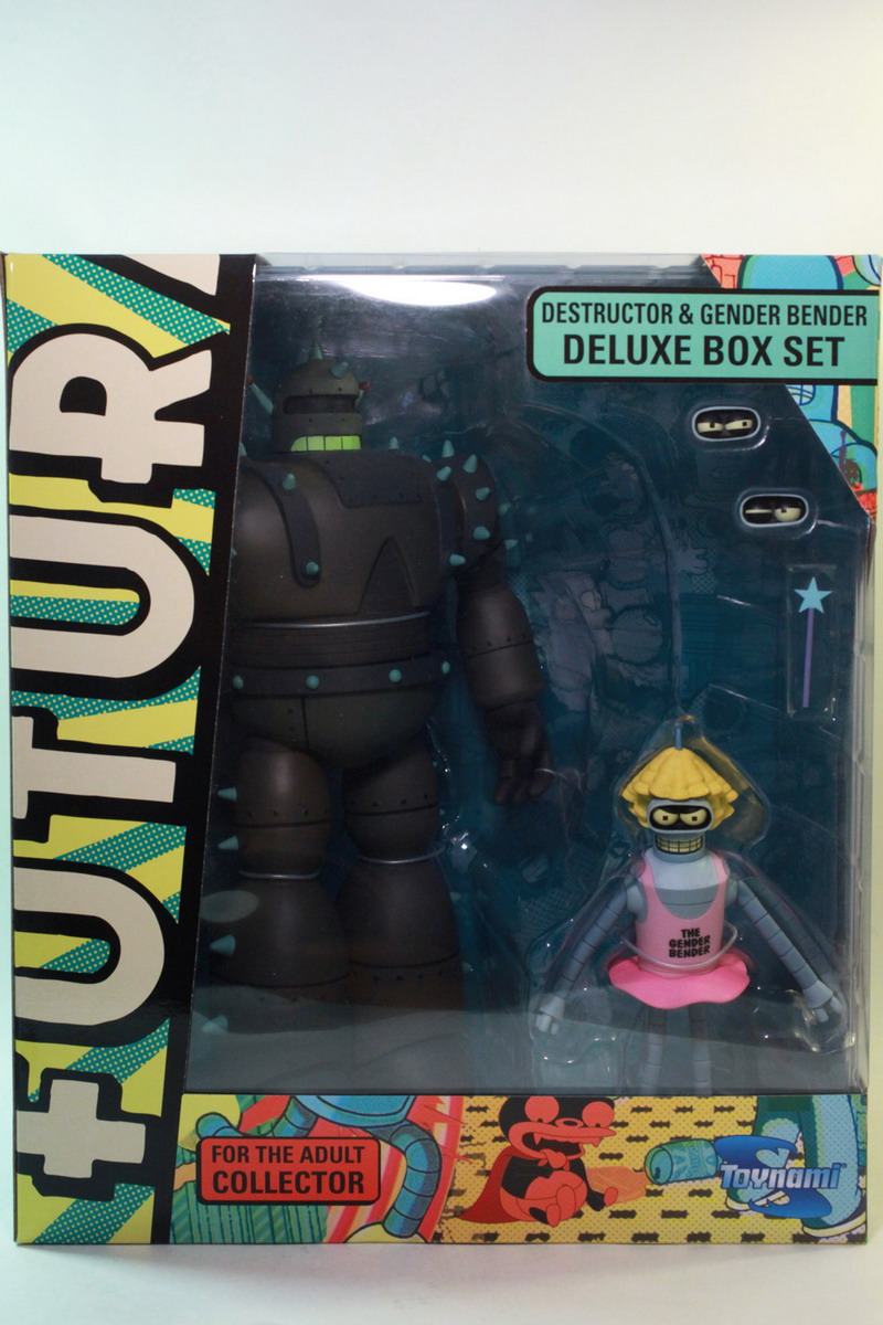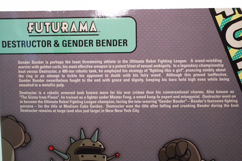 Collectors may recall a previous Destructor figure exclusive, but this one comes with a first time appearance of Gender Bender. The box falls in line with all the other Futurama releases with colorful art on all sides and bios on the back.