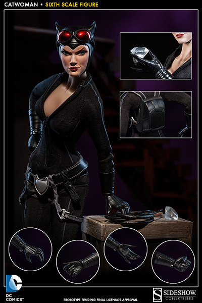 Available now on the Sideshow website is their newest DC Comics Sixth Scale Figure, Catwoman! This stunning figure features great clothing elements and plenty of extras like two faces (one mischievous, one ferocious), multiple hands, goggles, and much more. You can even get in on the Sideshow Exclusive version that comes with a unique Egyptian Cat Idol! Catwoman is expected to ship in April of next year. Check out lots more photos below and then get your preorder in.