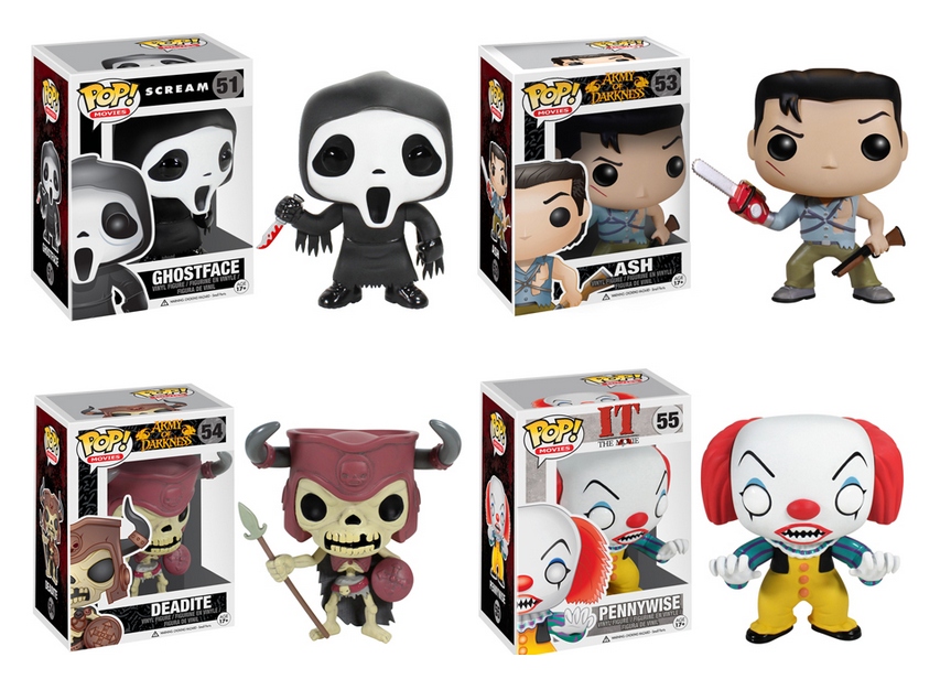Funko reveals a ton of new horror-themed POP! vinyl figures, all set for release November 12th. These include Scream's Ghostface, Army of Darkness' Ash and a Deadite, IT's Pennywise the Clown, Chucky from Child's Play, Trick R Treat's Sam, and Captain Spaulding from The Devil's Rejects. Not pictured: Billy from Saw!