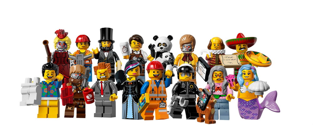 LEGO's popular blind-bagged series of minifigures will have a theme with the next assortment, that being characters pulled from the new THE LEGO MOVIE. 16 all-new minifigures will be part of the collection, including: William Shakespeare, Abraham Lincoln, Panda Guy, Marsha, Queen of the Mermaids, Velma Staplebot, Scribble-Face Bad Cop, Wild West Wyldstyle, Gail the Construction Worker, “Where Are My Pants?” Guy, Mrs. Scratchen-Post, Wiley Fusebot, President Business, Calamity Drone, Taco Tuesday Man, Larry the Barista, and what's sure to be the most sought-after, the movie's ordinary hero, Hard Hat Emmet. Each minifigure comes in a sealed “mystery” bag with one or more accessories, display plate and collector’s booklet.