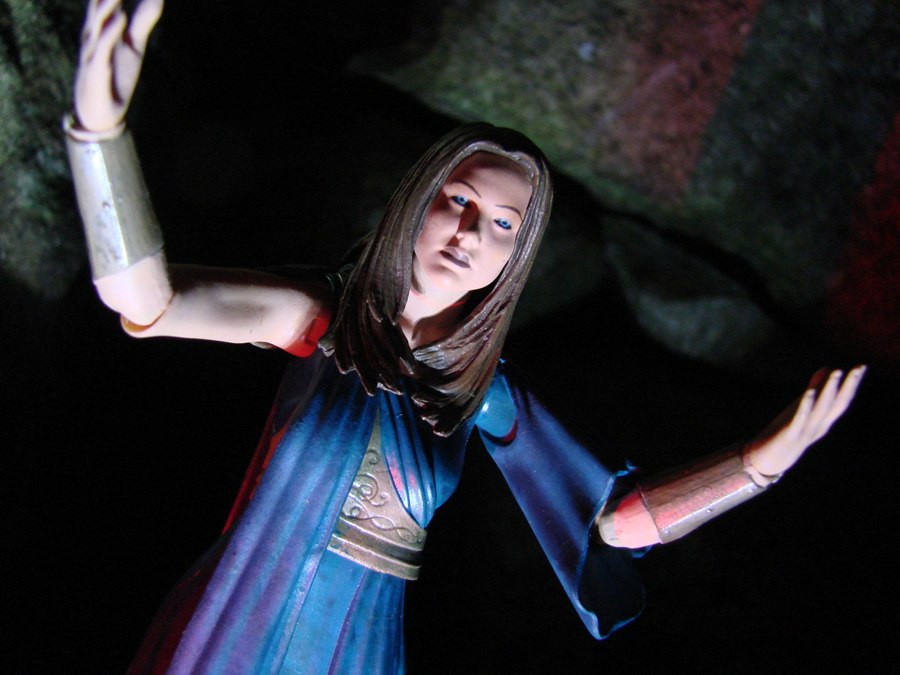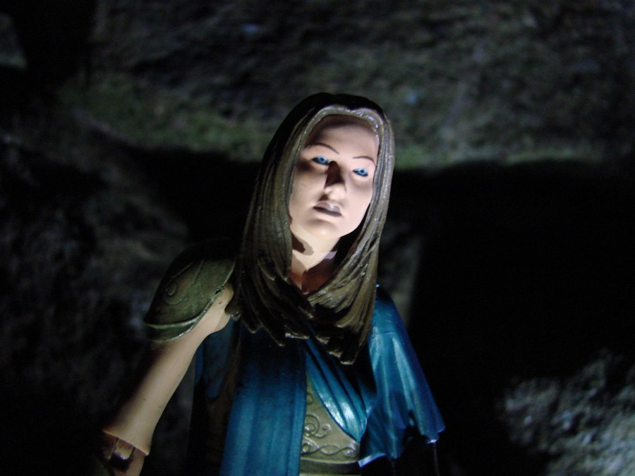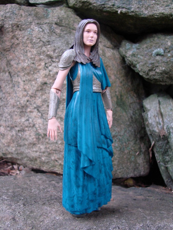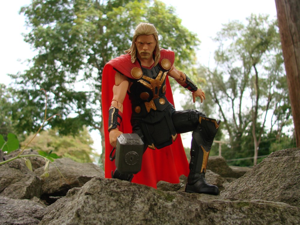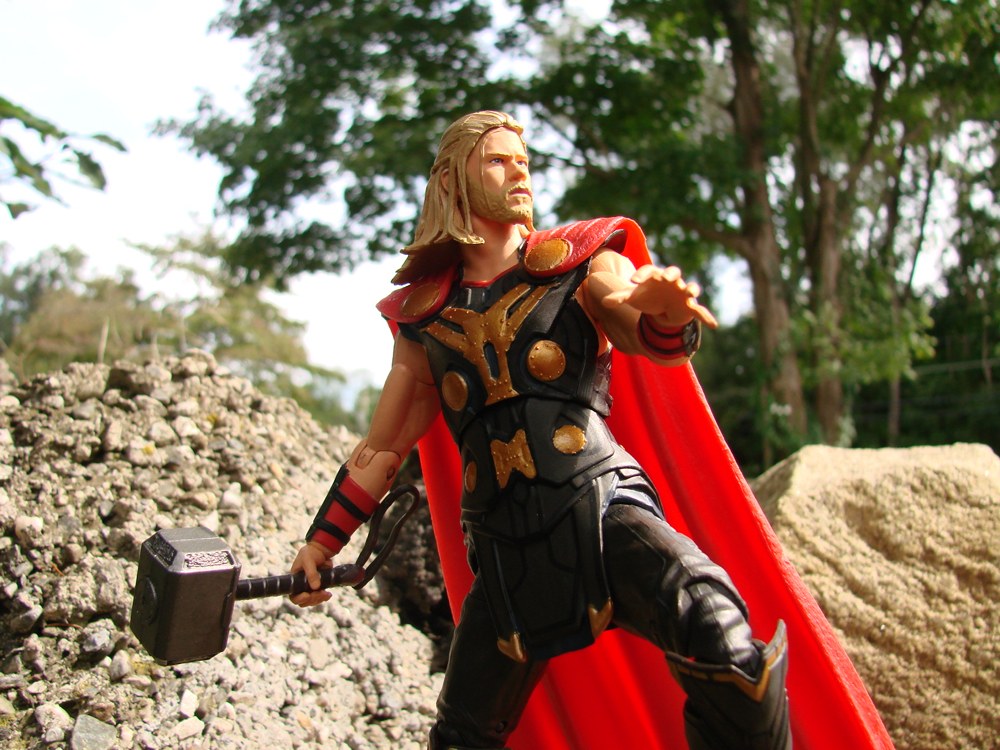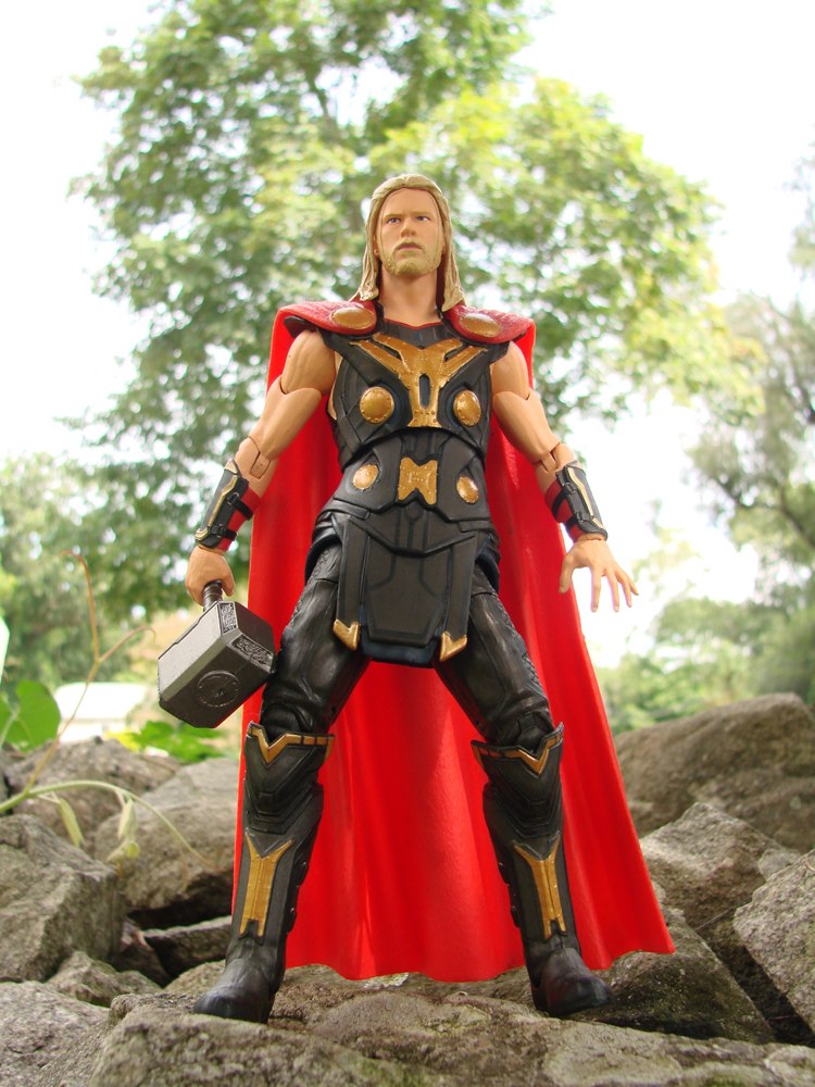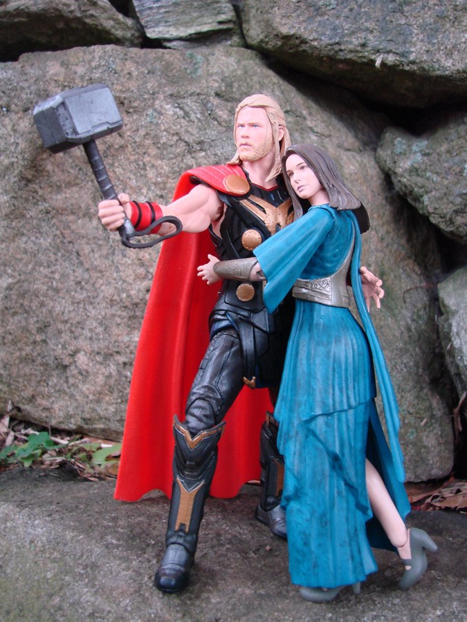 In addition to her alternate head, Jane Foster also comes with a Dark Elf weapon, which plugs into her rocky diorama piece. And if you also buy the new Marvel Select Thor, his diorama piece connects to hers to form a larger rock formation. Thor is in stores now, and Jane will hit stores in early December.