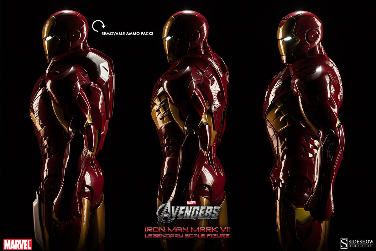 Sideshow has teamed up once again with long time friends and collaborators at Legacy Effects Studio, the special FX masters behind every live-action Iron Man suit since the first Iron Man film, and are proud to introduce the Iron Man Mark VII Legendary Scale Figure from Marvel’s 2012 blockbuster film, The Avengers. Measuring three feet tall, the impressive Legendary Scale Figure captures Tony Stark’s Mark VII armor with stunning realism at roughly half scale, crafted from polystone, fiberglass, metal and other premium grade materials.