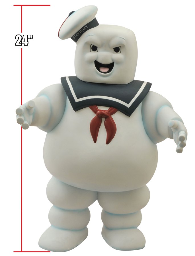 Choose the form of the Destructor! DST has taken their 24-inch vinyl bank of the Stay-Puft Marshmallow Man and given it an all-new "evil" face sculpt, revealing the malevolent presence of Gozer. This hard vinyl bank of the classic Ghostbusters character will hold a fortune in nickels, and tower over your other Ghostbusters toys. The bank has a coin slot on its back and an access door in the foot. Comes packaged in a clear polybag. Sculpted by Bill Mancuso. (Item #DEC131818, SRP: $125)