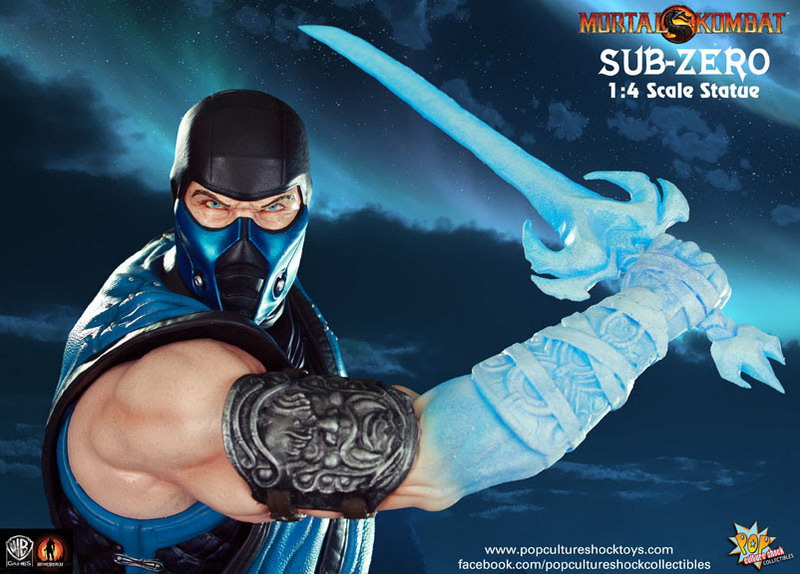 Pop Culture Shock Collectibles presents their latest 1:4th scale (approximately 17.5" tall) Mortal Kombat statue: Sub-Zero. Two versions of the Lin Kuei assassin will see release, a standard edition featuring an Ice Sword (limited to 400 pieces, $360) and a PCSC Exclusive packing BOTH Ice Sword and an Ice Blast (limited to 250 pieces, $370). Both versions go up for pre-order at popcultureshocktoys.com on Monday, January 6th at 3pm Pacific Time. The 1:4 Mortal Kombat SUB-ZERO Statue is estimated to ship third quarter 2014.