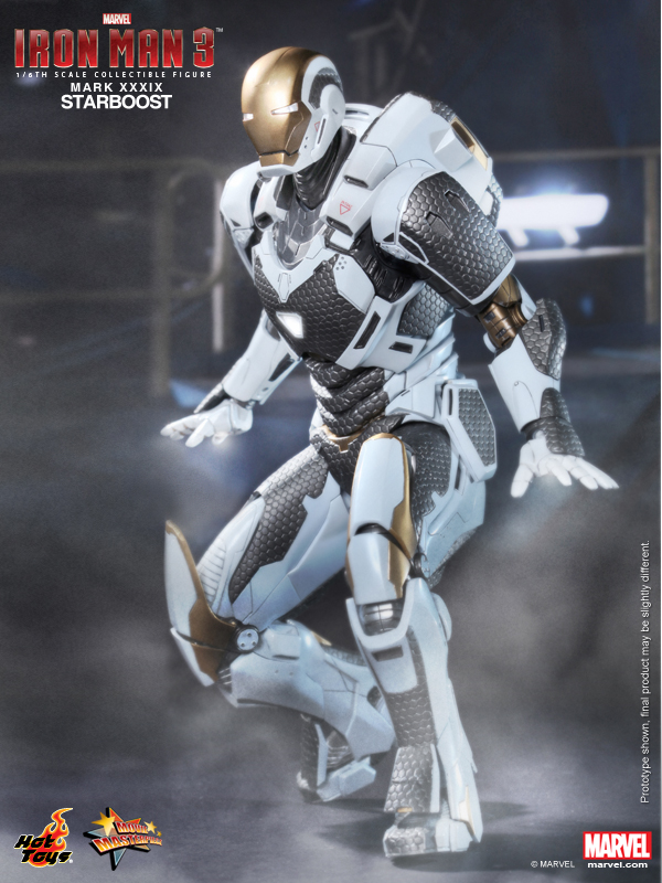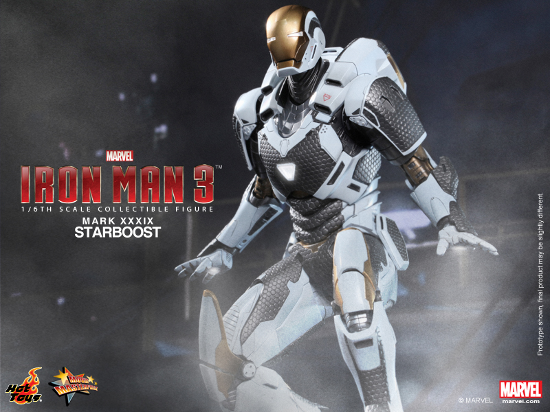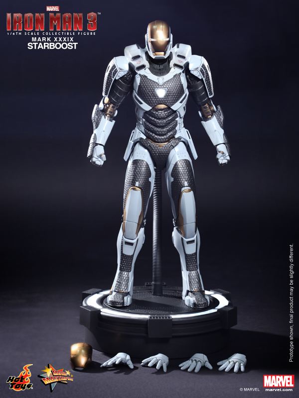 - Authentic likeness of Starboost (Mark XXXIX), the Sub-Orbital Suit, in Iron Man 3
