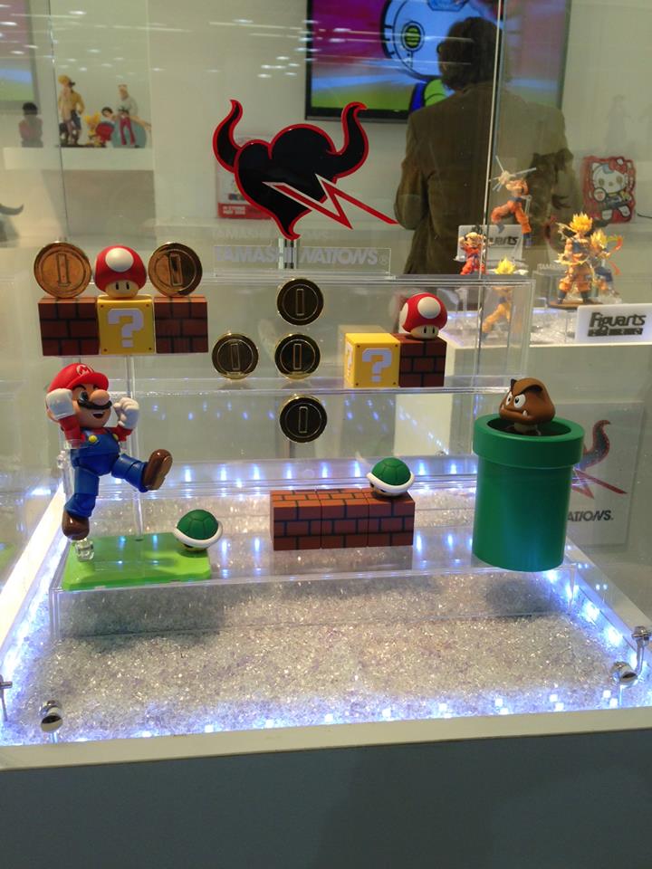 Via photos taken at Germany's Nuremburg Toy Fair, Bluefin Tamashii Nations reveals their latest S.H. Figuarts license: SUPER MARIO. The figure is scheduled to drop this May in Japan (which most likely means a late summer U.S. launch), Nintendo's iconic video game plumber equipped with a Super Mushroom, Mystery Box and Gold Coin. Fans will also be receiving Diorama Play Sets to expand on the display fun, the add-ons including grassy bases, a Koopa Shell, Goombas, Brick Blocks, Warp Pipes, and even more Gold Coins and Mystery Boxes.