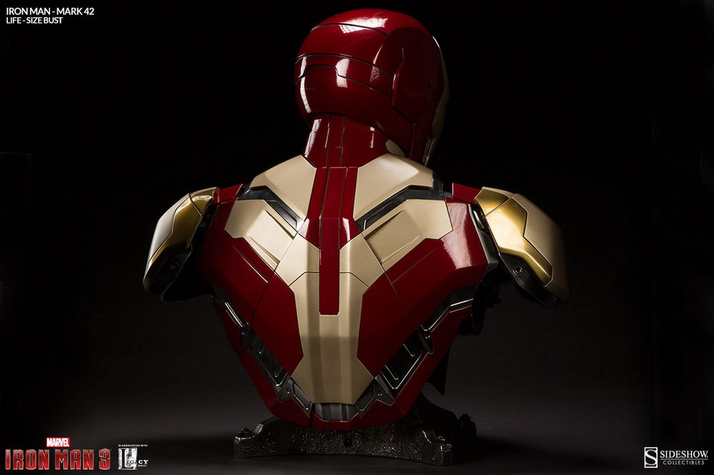 Scheduled to ship this August, the Iron Man Mark 42 Life-Size Bust is priced at $999.99 with a payment plan available for as little as $128.57/month.