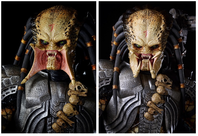 Complimented by an impressive paint application, again by artist Joseph Tsang, the updated 1/6th Predator bodies beautifully replicate their on-screen counterparts' looks. The reptilian skin patterns detail each 1/6th scale body and accurately reflect the character's design. Again, the armored plates in all of their pitted, worn silver detail come to life as well.