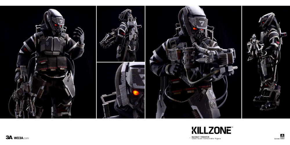 In typical 3A Toys fashion, the company teases collectors with new images of their latest license: Killzone. The first figure to see production is a 1:6th scale Hazmat Trooper. More details as we receive them.