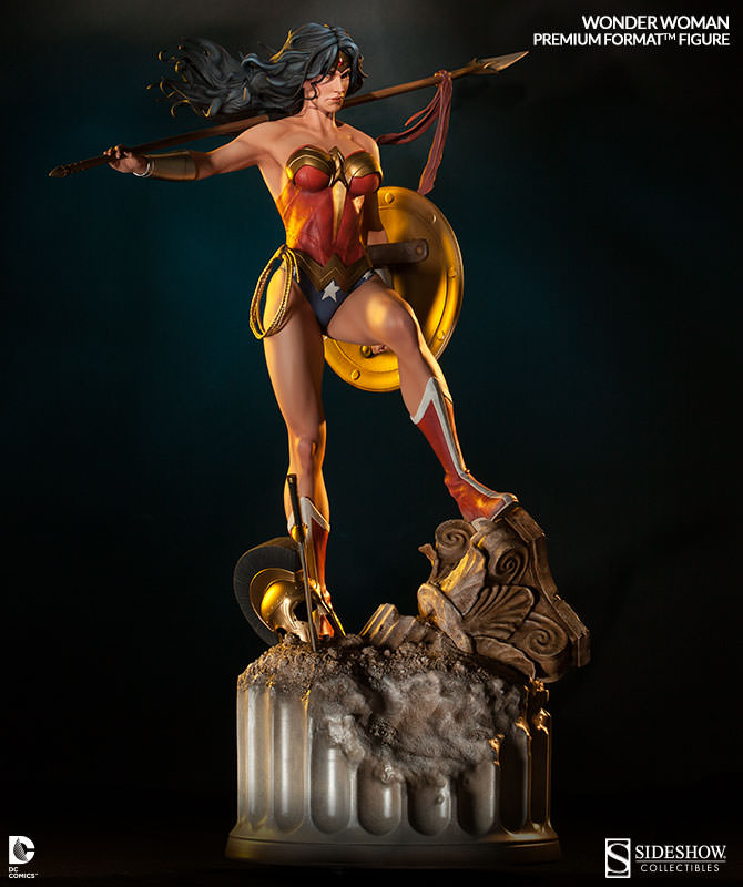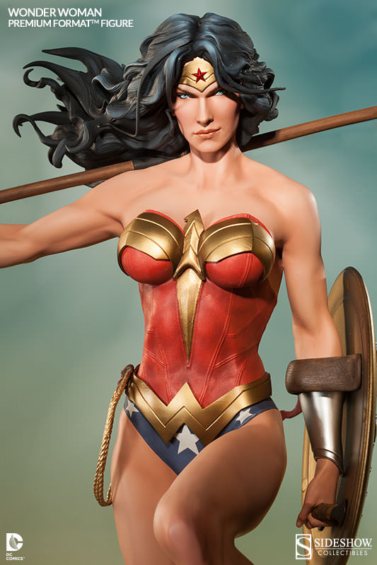 Sideshow presents their latest Premium Format Figure: Wonder Woman. Handcrafted with austere beauty and fierce determination, Princess Diana of Themyscira dons her iconic costume of stars and stripes, sworn to protect the world and uphold her mantle as Wonder Woman. She carries a long spear across her shoulders, and her iconic shield grasped firmly at her side – but above all, she carries the Amazons’ message of peace and justice.