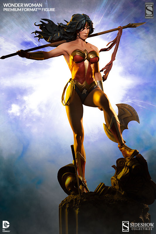 The Sideshow Exclusive edition (pictured below) gives collectors the option to display the mighty warrior princess with offensive tactics, brandishing an intricately designed axe in place of her shield.