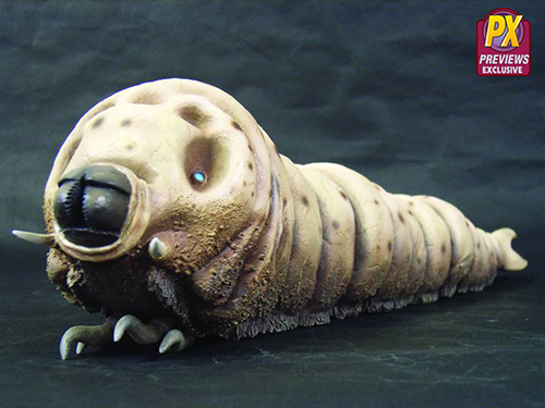 If one monster isn’t enough, fans can also get the TOHO 12” Series Mothra Vinyl 1961 Figure (Item Code: FEB142249, SRP: $90.00). The 180-meter long Larva has been downsized to 12”, and has impeccable detail, from head to tail. Shiny eyes, gnarly teeth and bristled hair along its belly, truly re-create the look of the soon-to-be moth monster.