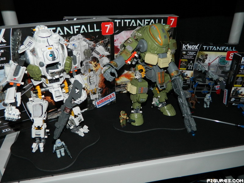 K'NEX is a company that we haven't covered in the past, but their recent acquisition of multiple video game licenses has drawn our attention. Topping that list is Respawn Entertainment's upcoming future shooter, Titanfall. With the game in player's hands early March, fans can get excited knowing that numerous construction sets will begin hitting shelves this July. On display were the two warring factions of the game - the Marauder Corps (M-COR) and Interstellar Manufacturing Corporation (IMC) - represented as numerous playsets. These ranged in size and complexity, and included both the pilots and their mechs, or titans: the Atlas (above left) and Ogre (above right).