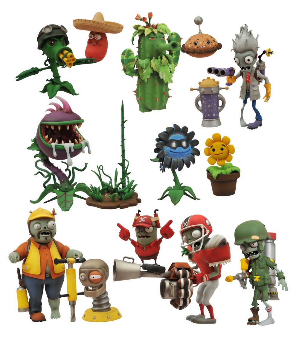 The hottest video game of 2014 is now the an all-new Select action figure line. Stage your own battles inspired by the Plants vs. Zombies: Garden Warfare using the first assortment of action figures from Diamond Select Toys. Each two-pack includes a 5" scale Zombie and an opponent Plant figure, each with multiple points of articulation and special accessories that will only be available on the specialty market.