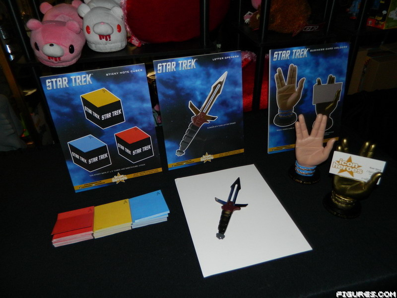Toy Fair attendees were really liking this cool item. Similar to Icon Heroes' MOTU Power Sword Letter Openers, this scaled replica of the Kingon war blade will be cast in a nice weighty metal and measure 8”H x 3”W x 4”D. It was cast from an actual prop and sized down, so it's about as authentic as you get! This will retail for $25.