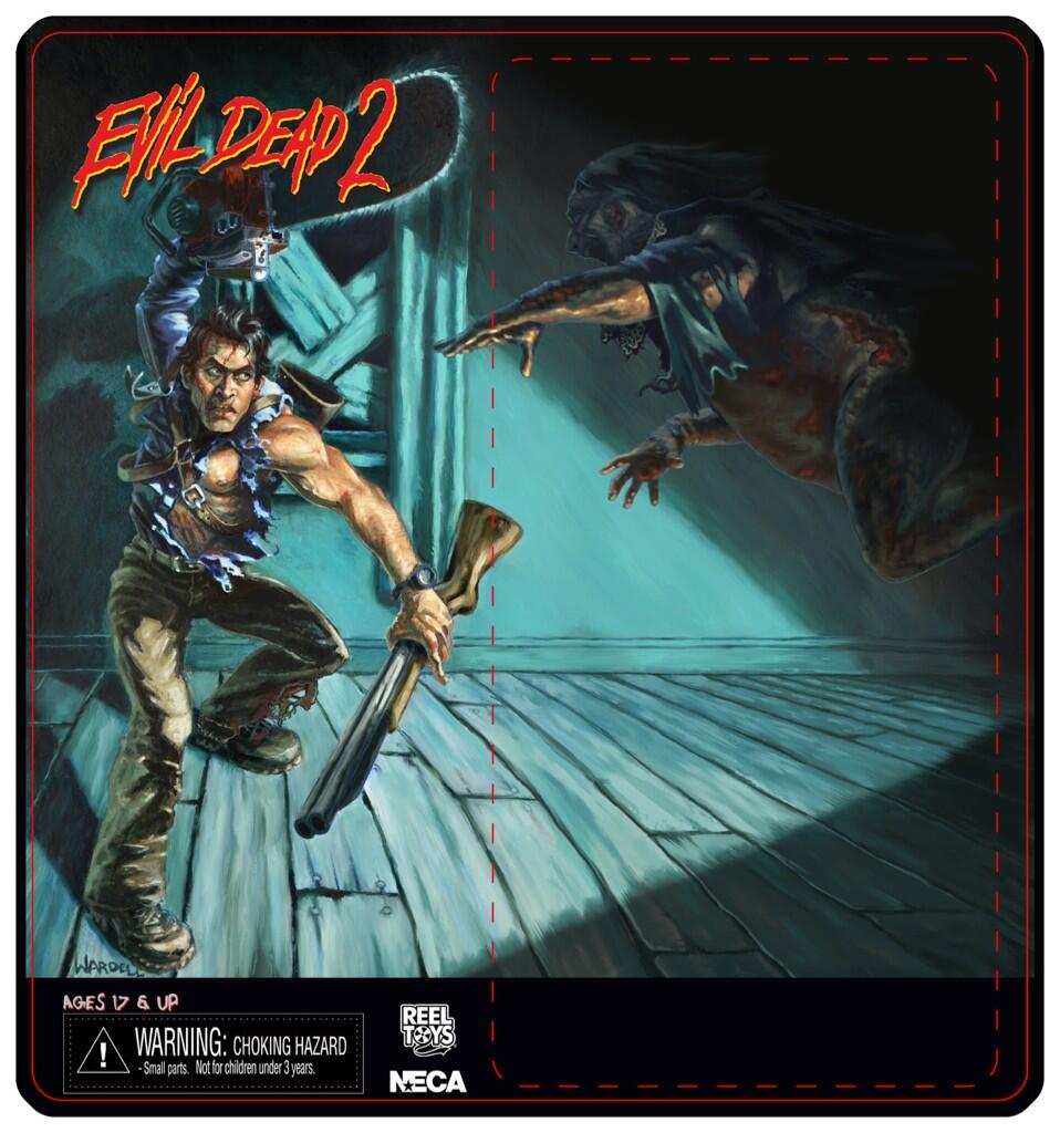 NECA has revealed the gorgeous card art for their next retro-style horror figure: HERO ASH from Evil Dead 2. It was created by NECA's talented lead painter Jon Wardell. Hero Ash is slated for release this April. The Mego-style figure will be followed this year by a new Deadite Ash (August release), a new sack head Jason from Friday the 13th Part II (July), first-ever Jason figure from Friday the 13th Part V (July), and because we all know how big of a Maiden fan NECA's Randy Falk is (and Maiden does rock), Iron Maiden's "The Trooper" Eddie (July).