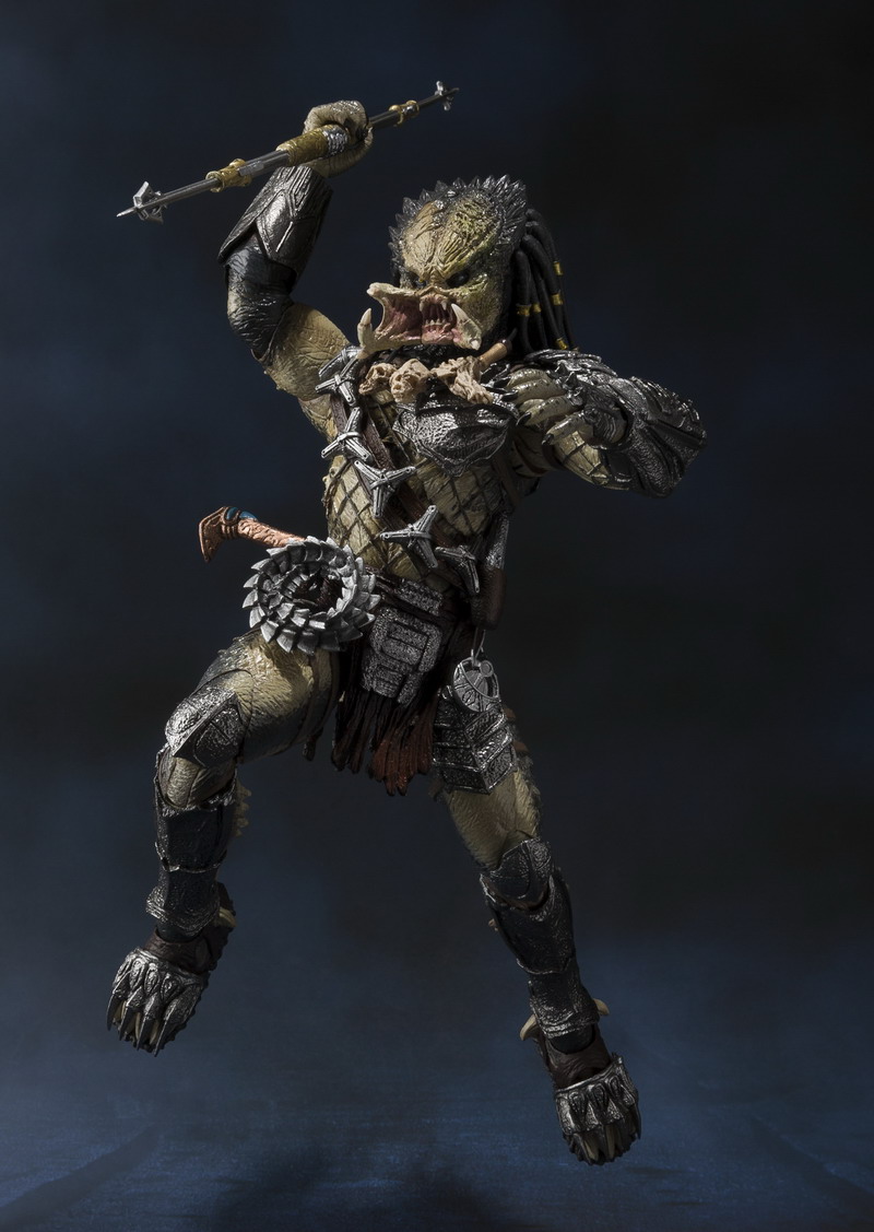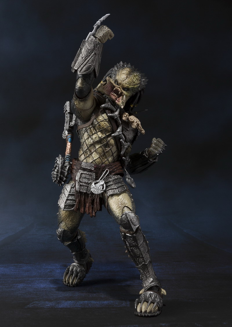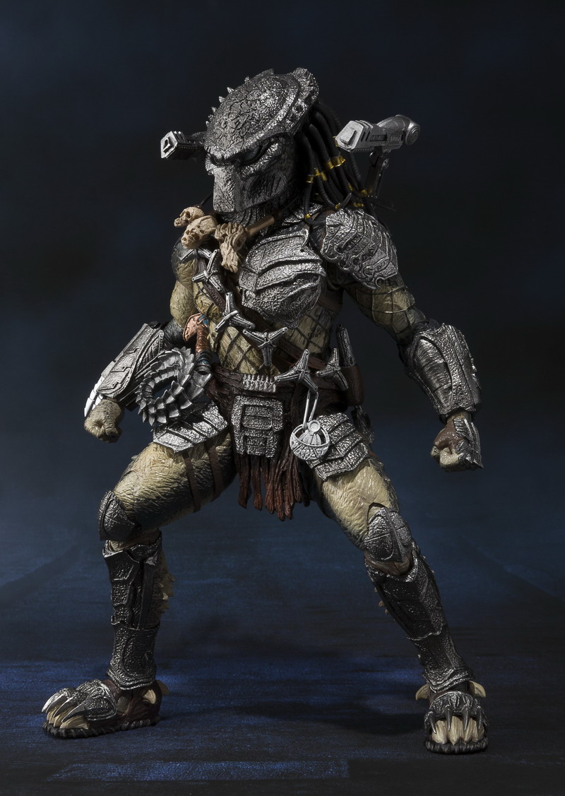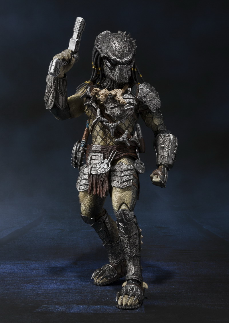 Faithfully proportioned as it appeared in the film, the set portrays the character after he picks up additional tools from the crashed ship in the movie. Tamashii Nations' creative team has made use of both resin and diecast materials for the very best results in quality while perfectly maintaining the realism seen on screen. This version of the character contains extra tools, such as claymores with removable holsters and two shurikens. Special interchangeable hands for use with the shuriken have also been included for replicating specific scenes from the movie. Additionally, this version of the Predator Wolf will feature two plasma cannons, a big cannon, and alternative parts in order to depict the cannon after being broken. Both short and long spears, as well as coiled and uncoiled whip parts are also featured, in addition to interchangeable heads and a full array of interchangeable hands.