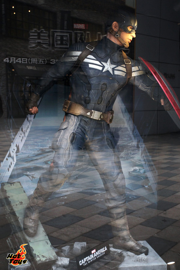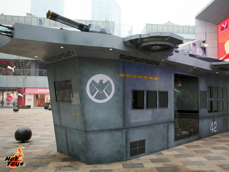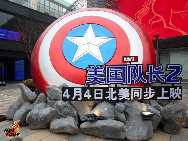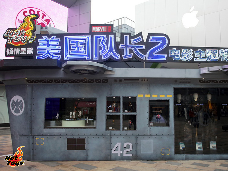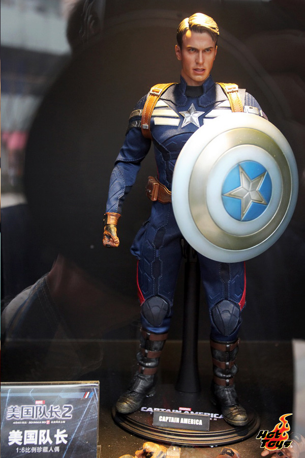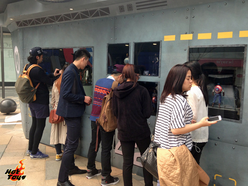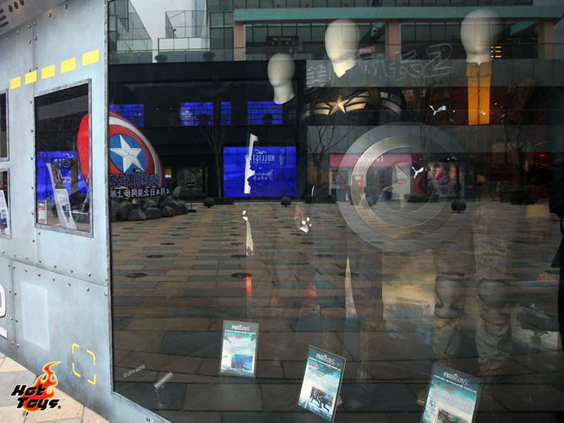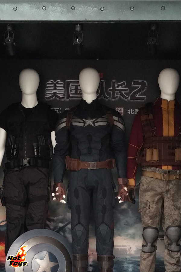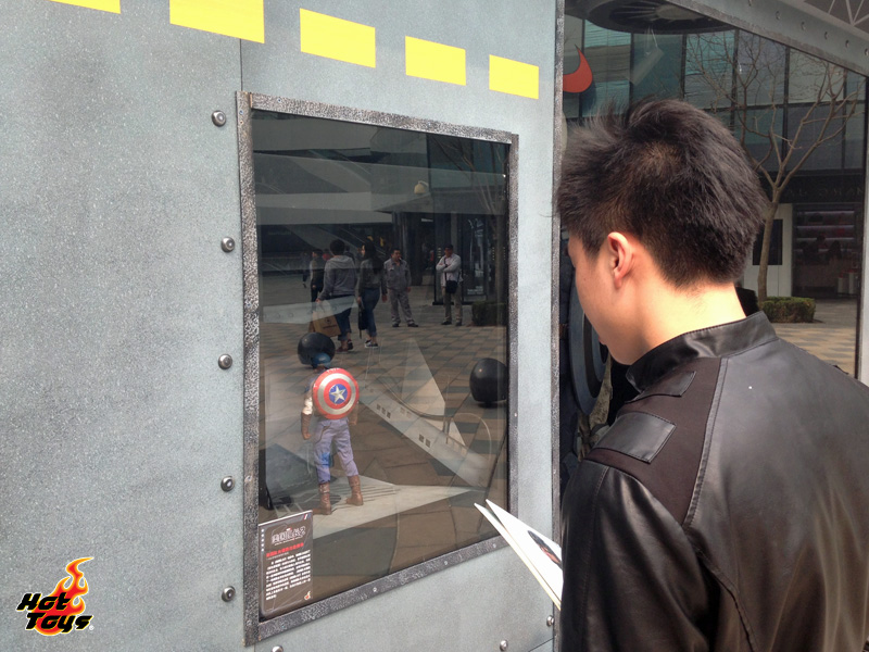 Hot Toy shares with us more photos from the Captain America: The Winter Soldier event being held in Beijing, China. In addition to an eye-catching gigantic 5 meters tall Captain America shield set up at the venue, inside the specially-made rendition of S.H.I.E.L.D. Helicarrier visitors are able to see the worldwide debut of several Hot Toys Captain America: The Winter Soldier figure prototypes. These include Captain America in his Stealth or S.H.I.E.L.D. suit (details to be announced) and his Golden Age suit (see our story HERE), Winter Soldier (revealed today HERE) and Black Widow (HERE).