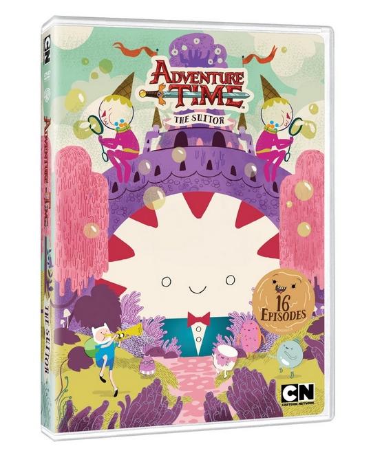 Cartoon Network has unveiled details on the latest home entertainment release from its hit animated series, Adventure Time. Featuring 16 full-length episodes that highlight fans’ favorite characters from the Land of Ooo – including the titular episode “The Suitor” which focuses on Princess Bubblegum – the Adventure Time: The Suitor DVD will be available on May 6, 2014. The DVD also features eye-catching packaging that highlights Peppermint Butler, one of the most popular and hard-working members of the Land of Ooo. With nearly three hours of content, Adventure Time: The Suitor will be available for the suggested retail price of $19.82.