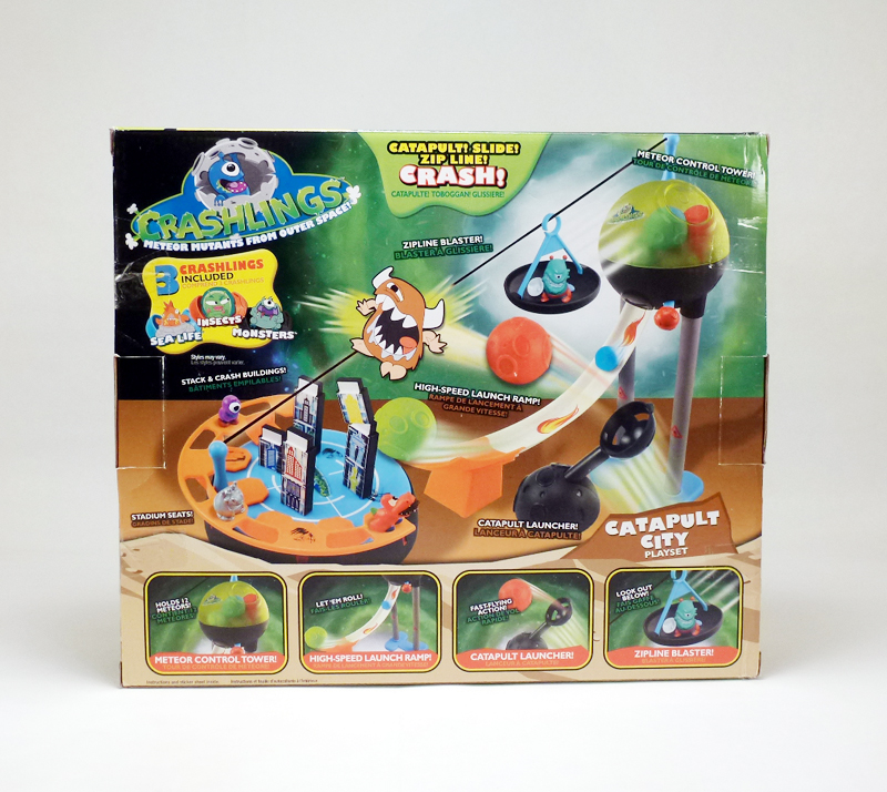 For even more Crashlings fun Wicked Cool Toys has larger sets and full playsets like the Meteor Missile Ship and elite Catapult City. The latter will run you $19.99 and comes in a huge box that’s plastered with images of the toy in action along with tons of bright graphics. It advertises features like “Catapult! Slide! Zip Line! Crash!” and much more, also showing off the different components and the fact that you get three Crashlings in the set.