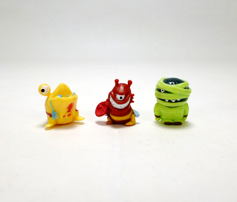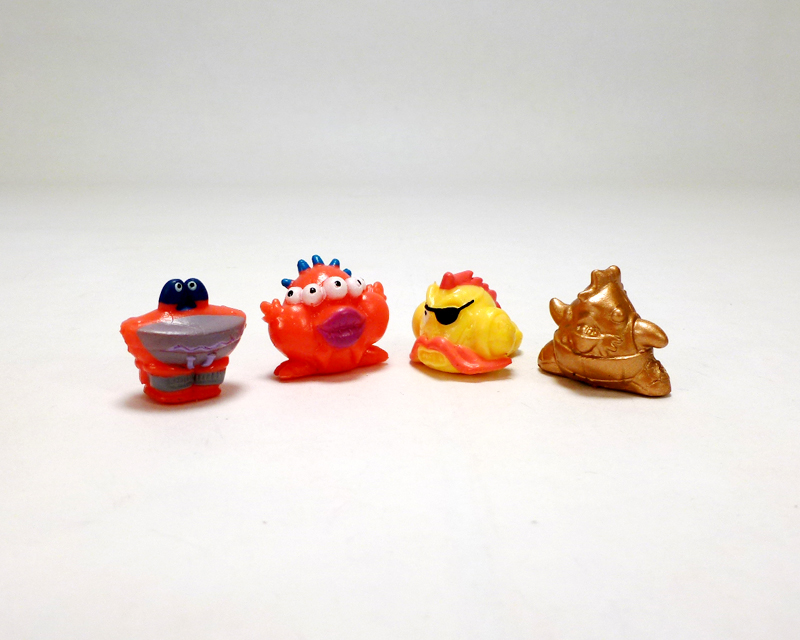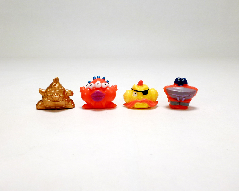 The basic idea of tiny, themed characters may not be new, but Crashlings has some pretty fun designs and a lot of collectability with sculpts reused in different color schemes and metallic paints. In my Sea Life 4-Pack I pulled commons Star Pirate, Crab Stronaut, and Blowfish Battler along with a gold Special Edition Sea Slime! Your results will vary. Each figure is about an inch tall, wide, or deep, with exaggerated features and weird appearances fitting in with the Crashlings world. There’s also a hole in the bottom of each figure for mounting on playset surfaces or anything else.