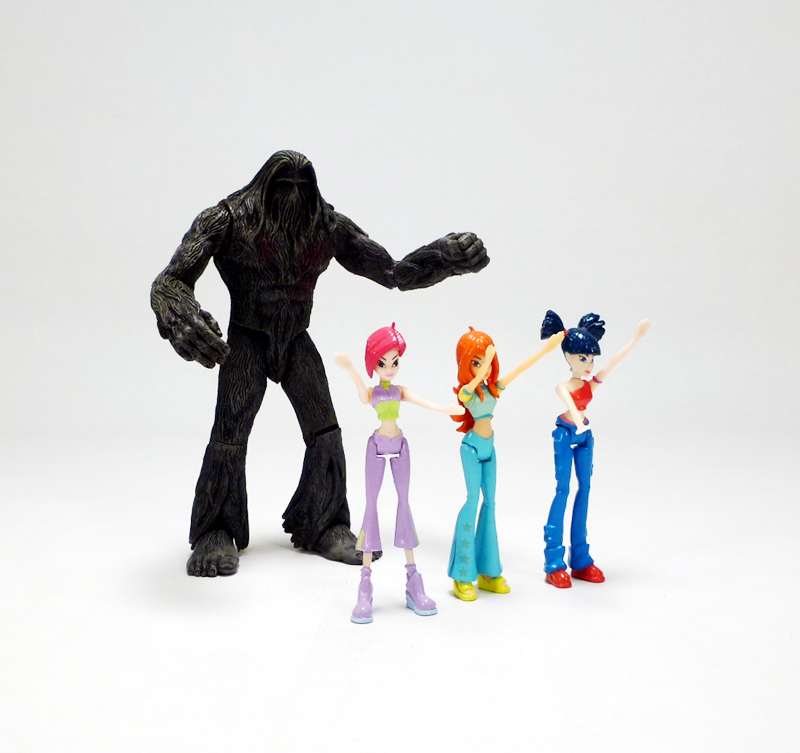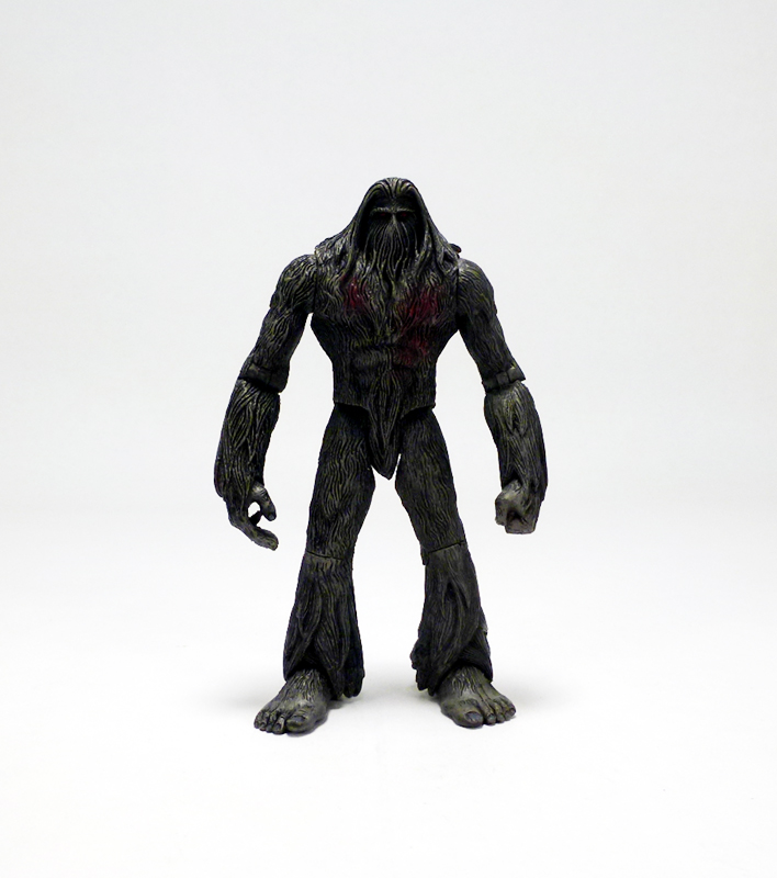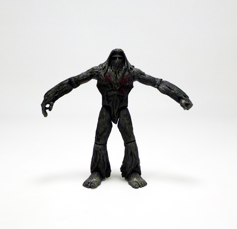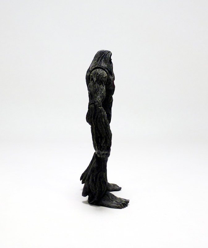 The sculpt is solid, basically consisting of an allover fur texture with plenty of variations in length and thickness on different body parts. I especially like the long, feathered areas around the hands and feet, and the face, despite being mostly a mass of hair, has lots of character. The Missouri Monster is almost entirely a dark grayish color (that ain’t so easy to photograph) with some subtle shading, and nice hand painted details include its red eyes and blood splatter on its chest.
