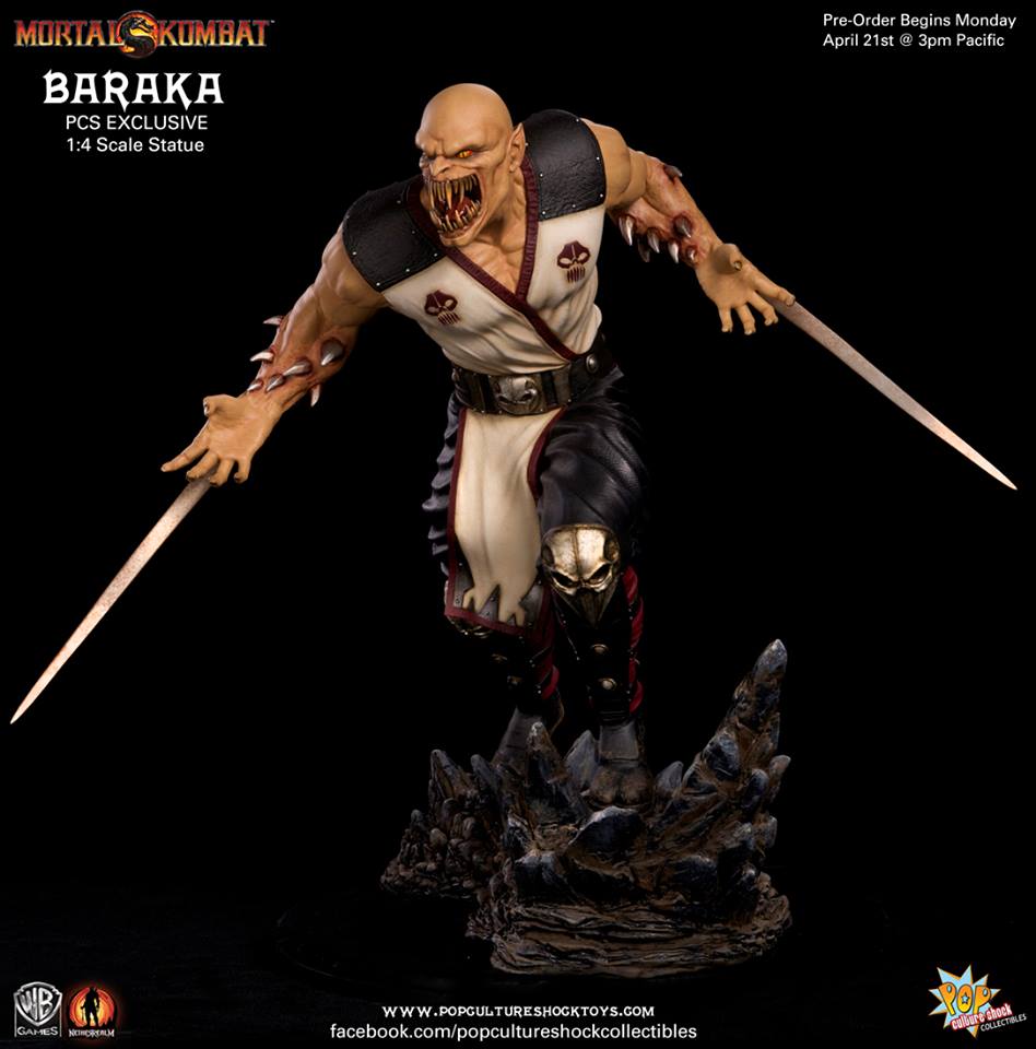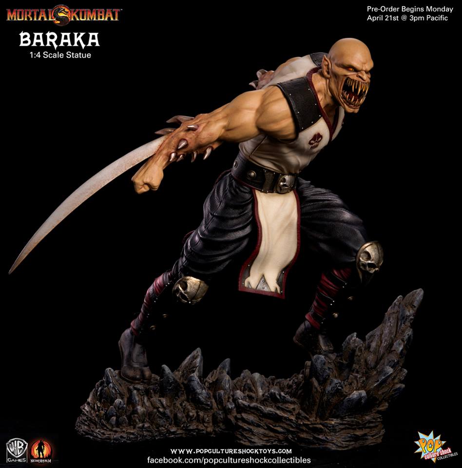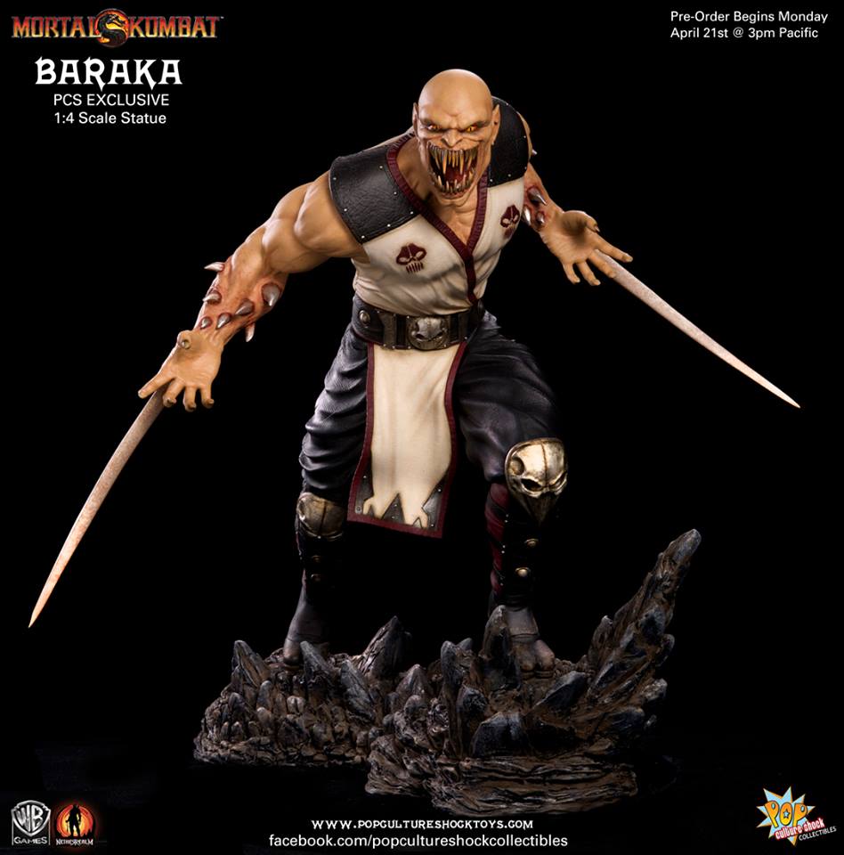 Pop Culture Shock Collectibles shares a full photo gallery of their next Mortal Kombat statue: Baraka. Two versions will be offered for pre-order at popcultureshocktoys.com beginning April 21st at 3pm Pacific Time: