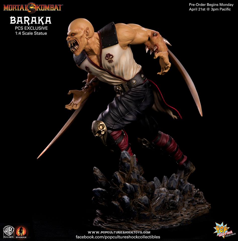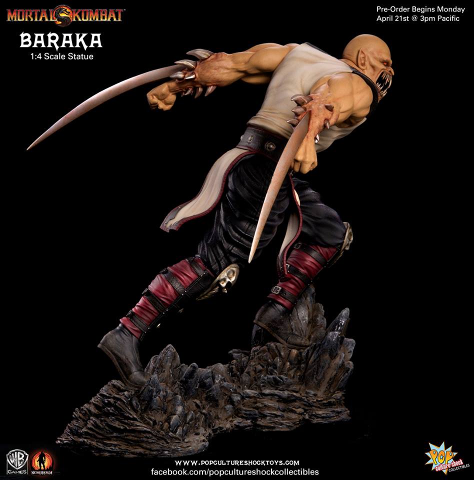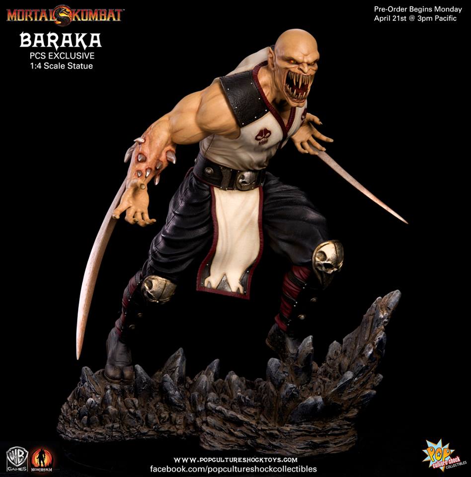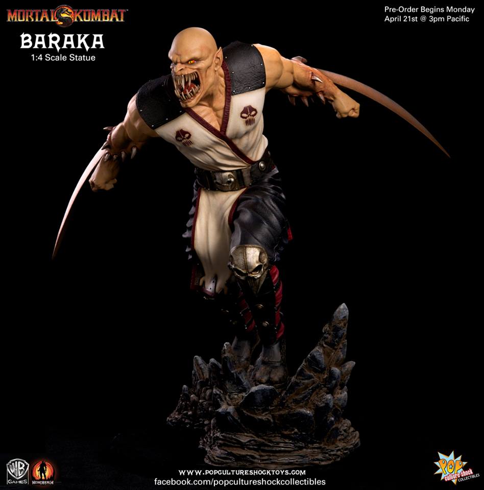 Pop Culture Shock Collectibles shares a full photo gallery of their next Mortal Kombat statue: Baraka. Two versions will be offered for pre-order at popcultureshocktoys.com beginning April 21st at 3pm Pacific Time: