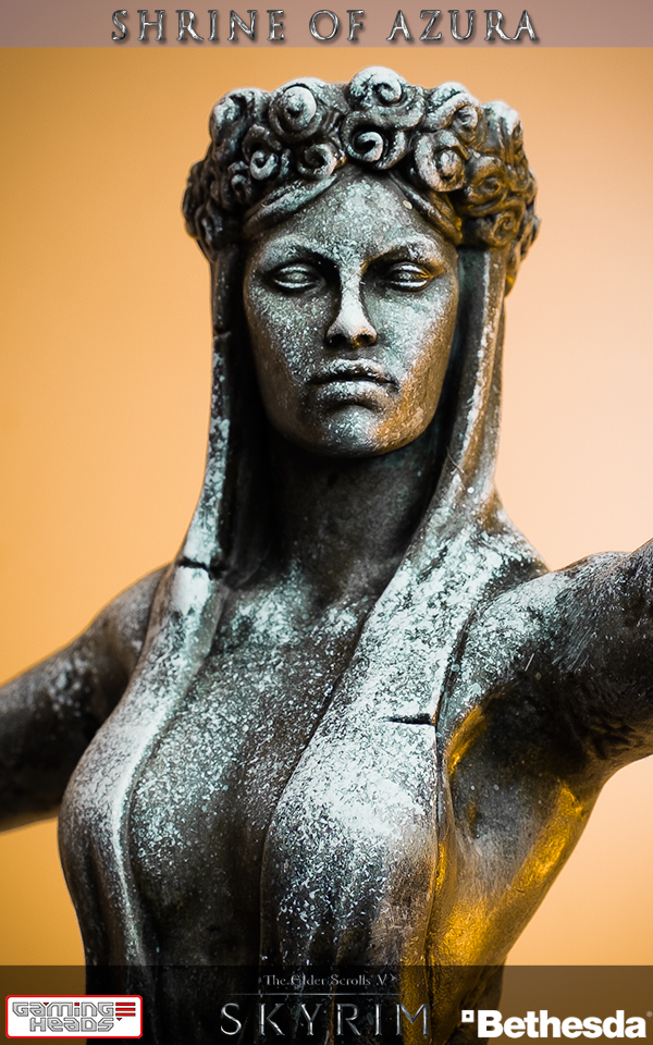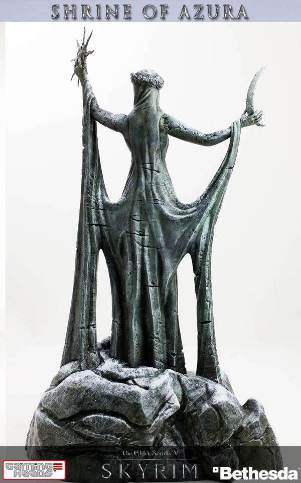 Two editions of the Shrine of Azura statue are being offered for pre-order at gamingheads.com. The standard release (pictured above) features the statue as if made of stone. It is limited to 750 pieces and priced at $209.99. A Gaming Heads Exclusive Edition comes in a faux bronze finish. It is limited to only 350 pieces worldwide and priced at $229.99. Both versions are slated for release 4th quarter 2014.