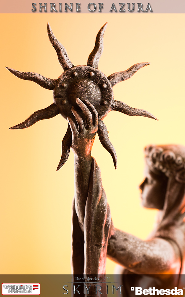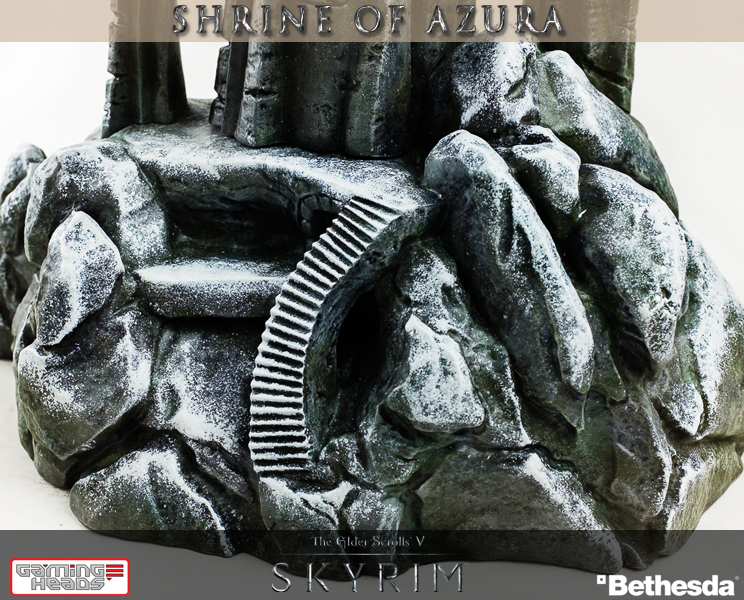 Gaming Heads presents the second in their line of The Elder Scrolls Shrine Series, the Shrine of Azura from The Elder Scrolls V: Skyrim (CLICK HERE to view the first release: The Shrine of Talos). The shrine features Azura, the Daedric Prince of Dusk and Dawn, standing majestically atop a snow covered mountain. At 1/6 scale, she measures approximately 18 inches tall, including the base, to the top of her star. Cast in high quality poly-stone, the statue is hand-finished and hand-painted. Working with the official in-game assets has allowed Gaming Heads to accurately recreate the Shrine to Azura perfectly in the real world.